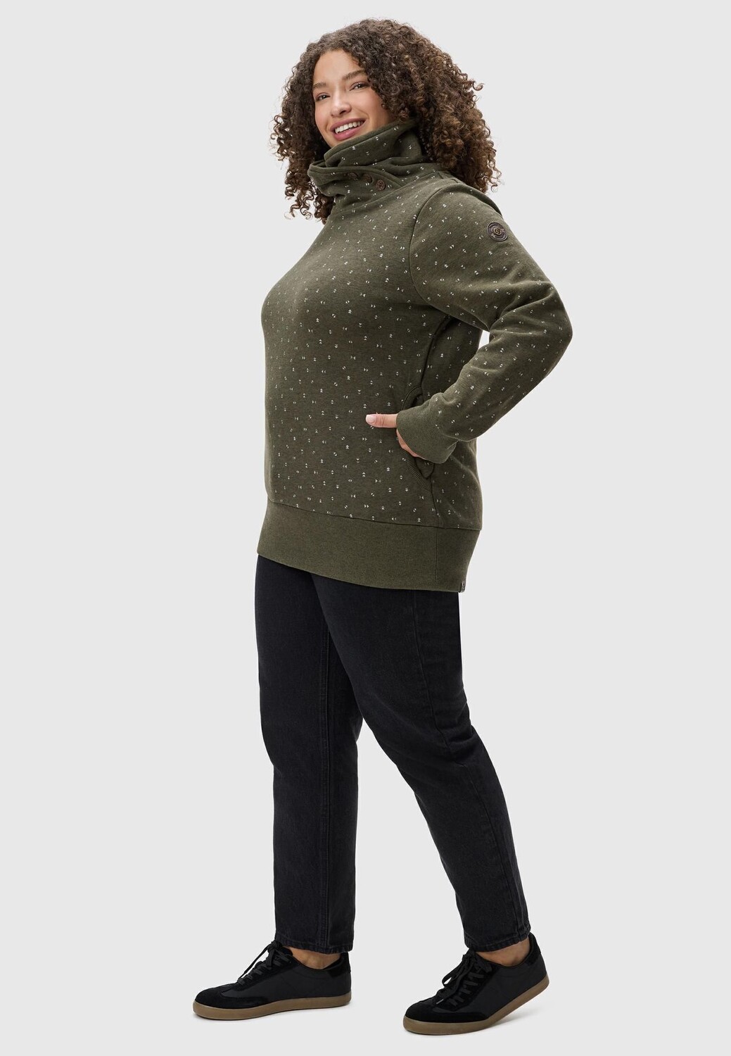 СМОТР: Модный женский свитер с длинными рукавами и модным узором по всей поверхности. Идеально подходит для непринужденных образов для отдыха и спортивных нарядов. Высокий воротник и привлекательные пуговицы придают свитеру особый характер и делают его привлекательным в каждом гардеробе. УСТОЙЧИВЫЙ МАТЕРИАЛ: Изготовлен из более экологически чистой смеси хлопка (содержащей переработанный полиэстер), что обеспечивает удобство ношения. Материал слегка эластичный и в то же время теплый, идеально подходит для прохладных дней или в качестве дополнительного слоя в мягкие дни. ПОСАДКА: толстовка прямого кроя свободного кроя подчеркивает фигуру, обеспечивая свободу движений. Широкие ребристые манжеты и подол обеспечивают хорошую посадку и предотвращают скольжение. ДЕТАЛИ: Оснащен высоким утепляющим воротником (воротником для дымохода) и боковым Этот летний свитер со потайными боковыми карманами сочетает в себе функциональность и стиль. Тонкие детали логотипа и привлекательный принт идеально дополняют дизайн. Свитшот – универсальный спутник во многих случаях. Собираетесь ли вы на прогулку в парк, занимаетесь спортом или отдыхаете дома – он всегда предлагает комфорт и стиль. Универсальное использование на открытом воздухе весной и летом, а также в помещении осенью и зимой делает его идеальным универсалом. Женская толстовка с высоким воротником-трубой от Ragwear Модный принт по всей поверхности Очень удобна в носке благодаря мягкой хлопковой смеси Супер длина выше бедер Прямой крой Мягкие ребристые манжеты на рукавах и по низу Нашивка с логотипом на левом рукаве 2 потайных кармана на переднюю часть можно стирать в машине при 30°C.
