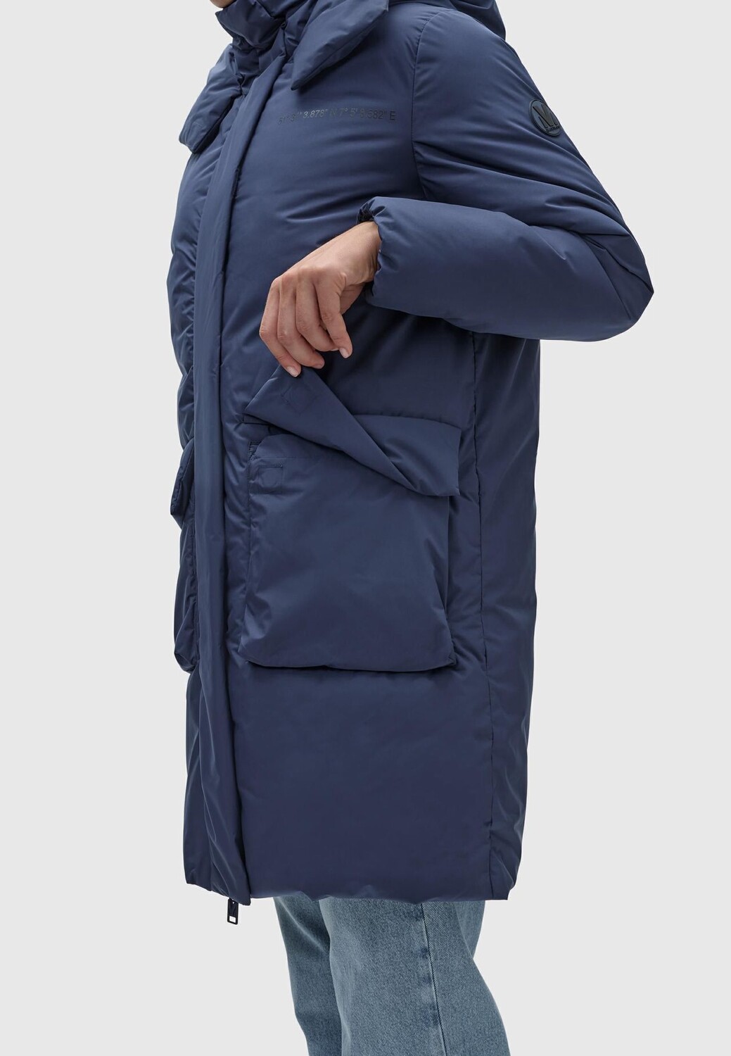СМОТР: Элегантное зимнее полупальто для женщин в современном дизайне. Прямой крой и длина до бедра создают городской и стильный образ. Прекрасно сочетается с джинсами или трикотажными платьями для создания универсального зимнего образа. УСТОЙЧИВЫЙ МАТЕРИАЛ: это пальто, изготовленное из переработанного материала, обеспечивает экологически чистый комфорт. Водоотталкивающий материал надежно защищает от влаги и ветра, а внешние карманы на подкладке обеспечивают дополнительный тепловой комфорт. ПОСАДКА: Длинная зимняя куртка прямого кроя подчеркивает любую фигуру и обеспечивает комфортную свободу движений. Длина до середины бедра обеспечивает оптимальную защиту от холода, не ограничивая подвижность, и идеально сочетается с зимней одеждой. ДЕТАЛИ: Оснащен двусторонней молнией и практичными магнитными застежками на внешних карманах, защитной полоске и воротнике. Женское пальто сочетает в себе функциональность и стиль. Для ежедневного ношения зимой, в холодную и сырую погоду это пальто – надежный спутник. Водоотталкивающие свойства и практичные детали делают его идеальным для различных случаев и всегда гарантируют модный внешний вид. Женское полупальто на зиму длиной до ок. до середины бедер Переработанный материал Прямой крой Высокозастегивающаяся двусторонняя молния спереди Защитная планка с магнитной застежкой Концы рукавов с внутренней резинкой 4 наружных кармана (карманы с клапанами на подкладке, карманы для рук) 2 внутренних кармана на молнии Капюшон на подкладке Машинная стирка при 30 °С