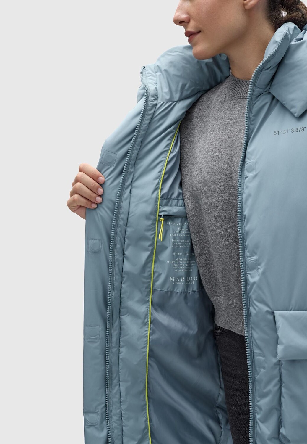 СМОТР: Элегантное зимнее полупальто для женщин в современном дизайне. Прямой крой и длина до бедра создают городской и стильный образ. Прекрасно сочетается с джинсами или трикотажными платьями для создания универсального зимнего образа. УСТОЙЧИВЫЙ МАТЕРИАЛ: это пальто, изготовленное из переработанного материала, обеспечивает экологически чистый комфорт. Водоотталкивающий материал надежно защищает от влаги и ветра, а внешние карманы на подкладке обеспечивают дополнительный тепловой комфорт. ПОСАДКА: Длинная зимняя куртка прямого кроя подчеркивает любую фигуру и обеспечивает комфортную свободу движений. Длина до середины бедра обеспечивает оптимальную защиту от холода, не ограничивая подвижность, и идеально сочетается с зимней одеждой. ДЕТАЛИ: Оснащен двусторонней молнией и практичными магнитными застежками на внешних карманах, защитной полоске и воротнике. Женское пальто сочетает в себе функциональность и стиль. Для ежедневного ношения зимой, в холодную и сырую погоду это пальто – надежный спутник. Водоотталкивающие свойства и практичные детали делают его идеальным для различных случаев и всегда гарантируют модный внешний вид. Женское полупальто на зиму длиной до ок. до середины бедер Переработанный материал Прямой крой Высокозастегивающаяся двусторонняя молния спереди Защитная планка с магнитной застежкой Концы рукавов с внутренней резинкой 4 наружных кармана (карманы с клапанами на подкладке, карманы для рук) 2 внутренних кармана на молнии Капюшон на подкладке Машинная стирка при 30 °С