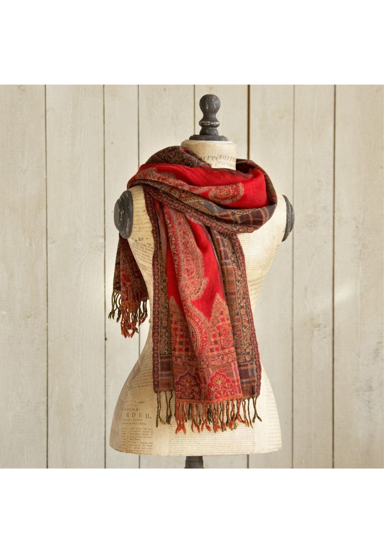 Сочетание пейсли и клетки в теплых ярко-красных тонах гарантирует модный внешний вид. Невероятно мягкое качество из чистой шерсти. С бахромой.