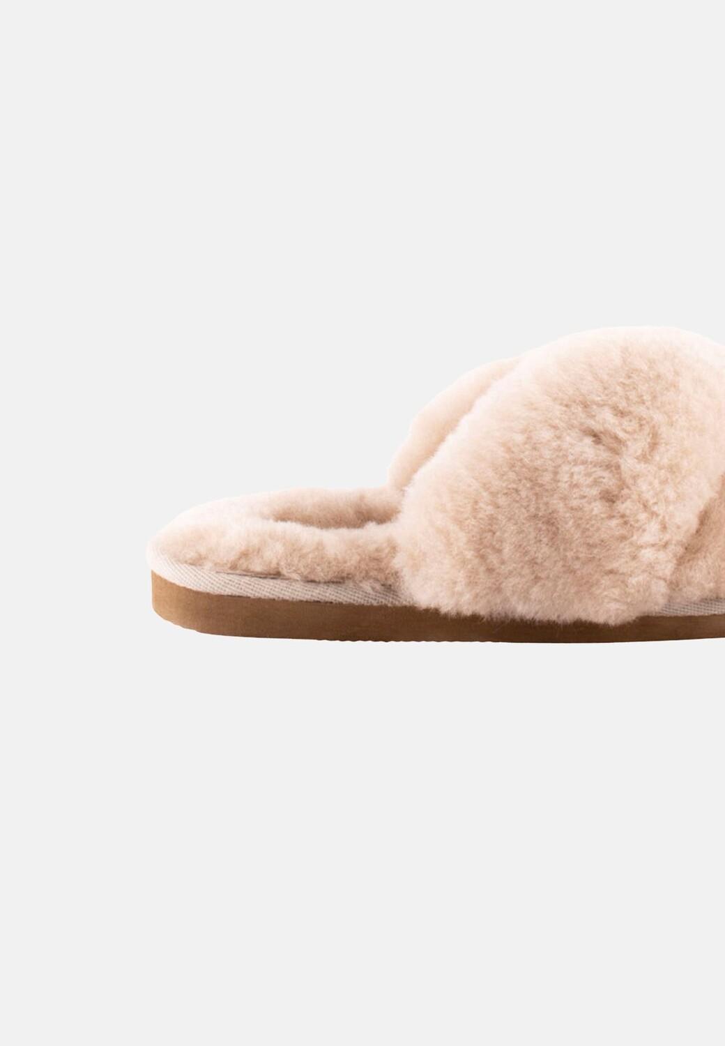Тапочки Lovisa из мягкой овчины представлены в модной версии без шнуровки с широким скрещенным верхом и открытым носком. Текстильная лента вокруг подошвы завершает дизайн. Легкая подошва обеспечивает отличную амортизацию и дополнительный комфорт. Также подходящие для использования на открытом воздухе, тапочки за короткое время идеально адаптируются к ноге благодаря натуральному материалу, даже если поначалу они могут показаться немного тесными.