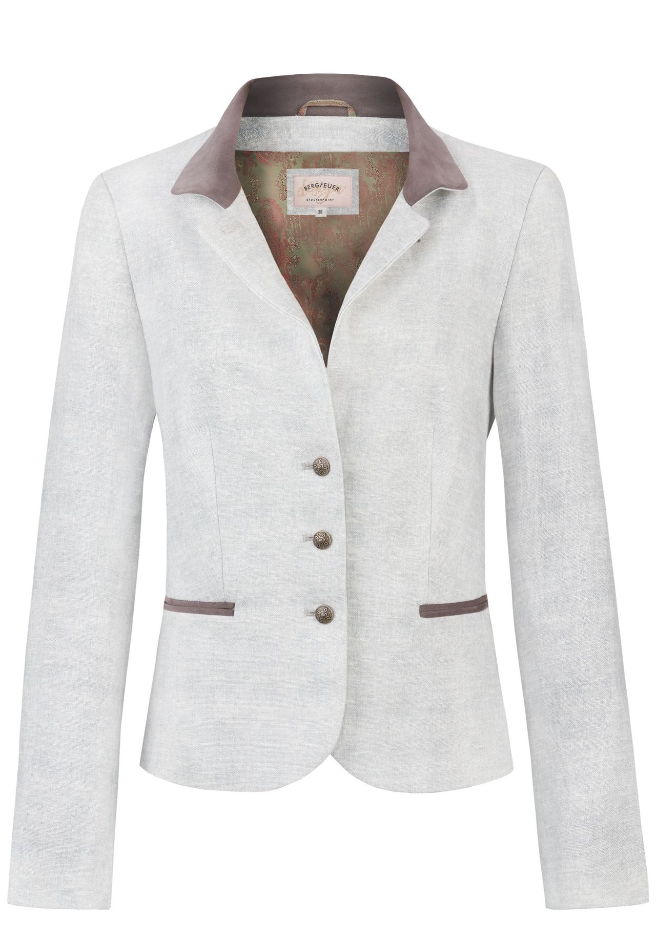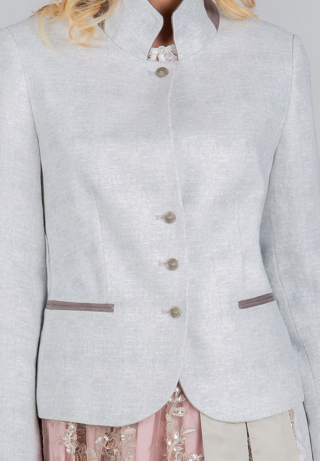 Традиционная куртка Felicia от Bergfeuer светло-серого цвета. Элегантная модель впечатляет качественным бельем. Особое внимание уделяется варианту воротника, который можно носить как воротник-стойку или опционально как воротник Кент. Куртку можно сочетать с джинсами как для праздника, так и в повседневной жизни, она придаст вашему образу особую нотку. Почувствуйте дизайнерскую руку Stockerpoint и создайте свой особенный стиль.