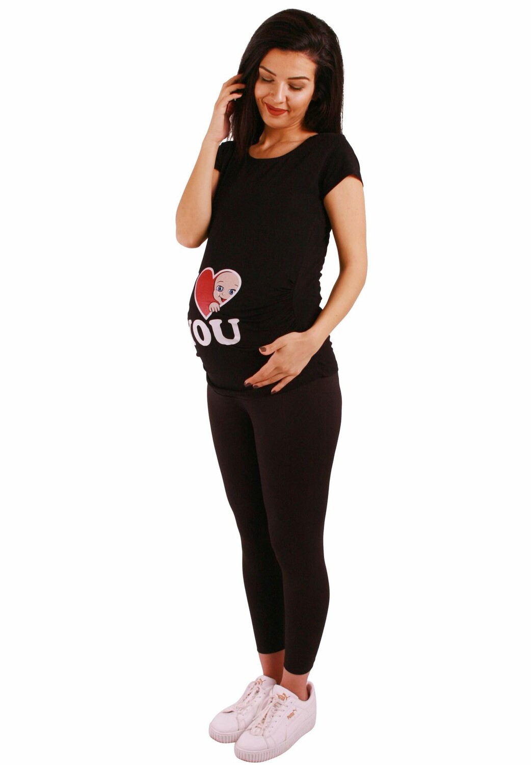 . – Доступны в разных цветах – Мотив: I Love You – Машинная стирка при 30 градусах, наизнанку, сушить в стиральной машине нельзя – Материал: 95% хлопок, 5% эластан Особенности: Сторона оборки для растущего живота Принт I Love You Baby Модная современная молодежная модная рубашка для беременных Длина рукава: Короткий рукав