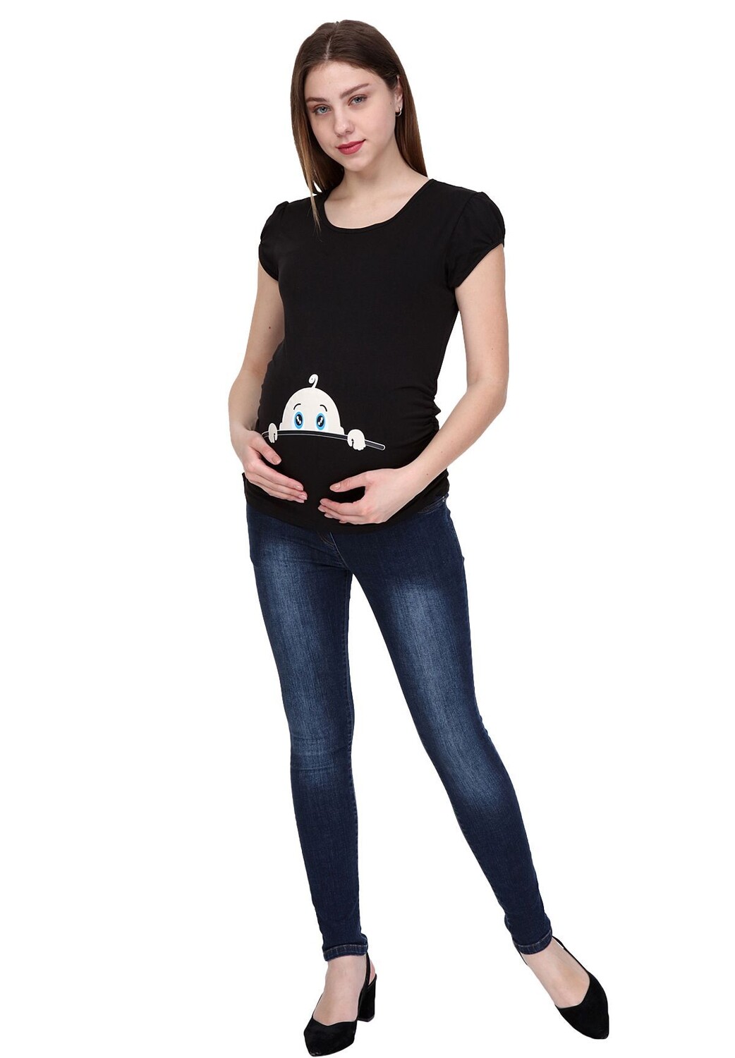 . – Доступны в разных цветах – Мотив: Curious Baby – Можно стирать в машине при 30 градусах, наизнанку, нельзя сушить в стиральной машине – Материал: 95% хлопок, 5% эластан Особенности: Боковые оборки для растущего живота Принт Curious Baby Модная современная молодежная рубашка для беременных Длина рукава: Короткий рукав
