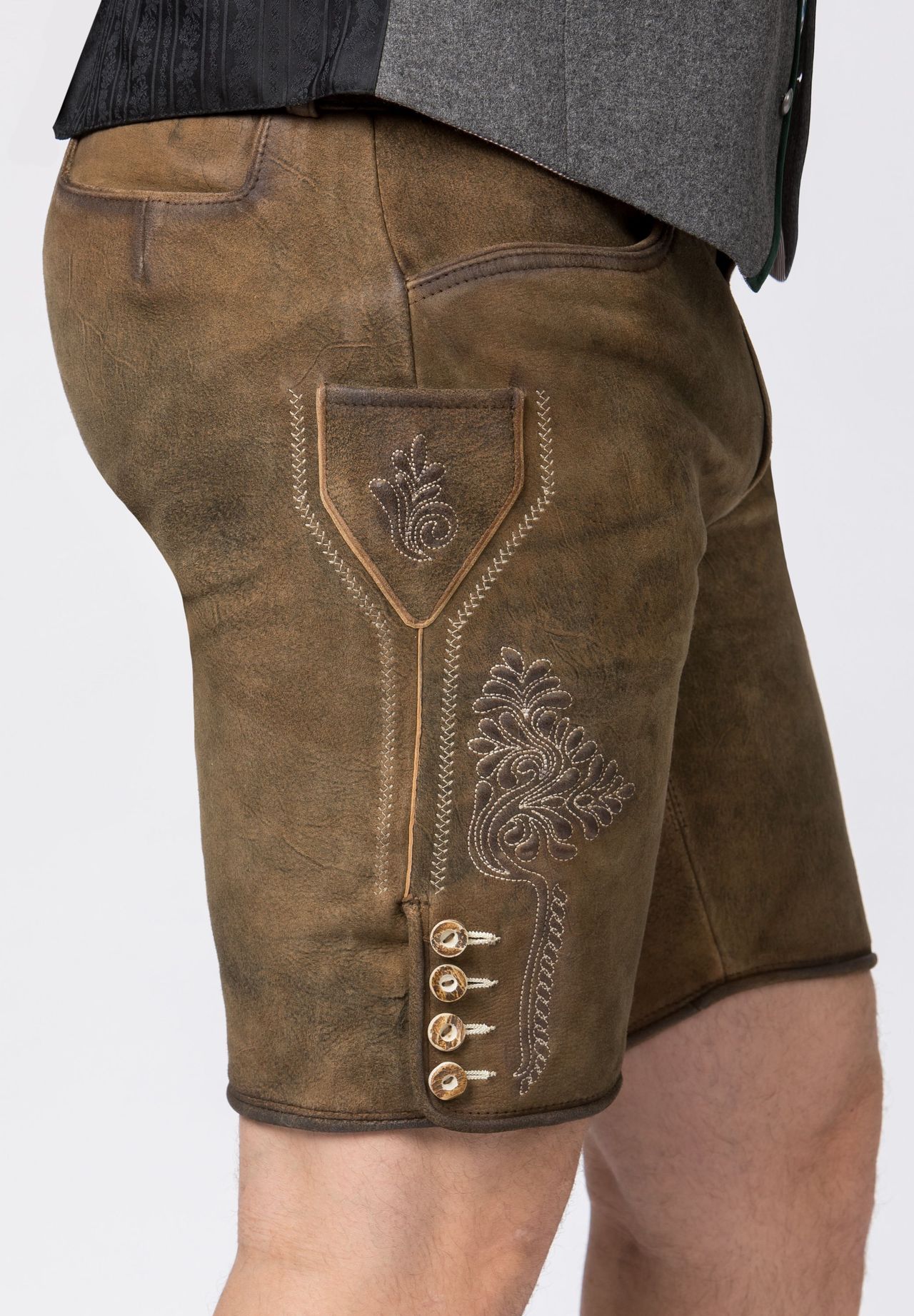 Инструкции по уходу за текстильными изделиями: не стирать, не отбеливать, не сушить в стиральной машине, не гладить, аккуратно чистить перхлорэтиленом. Материал одежды: Общий результат: 100%. кожа Содержит нетекстильные части животного происхождения: да Описание товара: традиционные ледерхозен Corbi от Stockerpoint Classics. Короткие кожаные брюки из высококачественной дубленой кожи оленя под оленя отличаются необычной структурой и прекрасно гармонируют с классическими роговыми пуговицами. Вместо нагрудника эти штаны выполнены на молнии. Традиционная вышивка незаметно находится на переднем плане и придает модели типичный характер. Брюки дополнены ремнем и пряжкой с изображением оленя цвета старинного серебра. Это универсальный вариант, который прекрасно сочетается со многими традиционными нарядами. Особенные характеристики: Детали ручной работы и лучшее качество изготовления 100% натуральная кожа В комплект входит ремень Высокие -качественная дубленая козья кожа Шнуровка сзади на поясе Длина брюк: Шорты