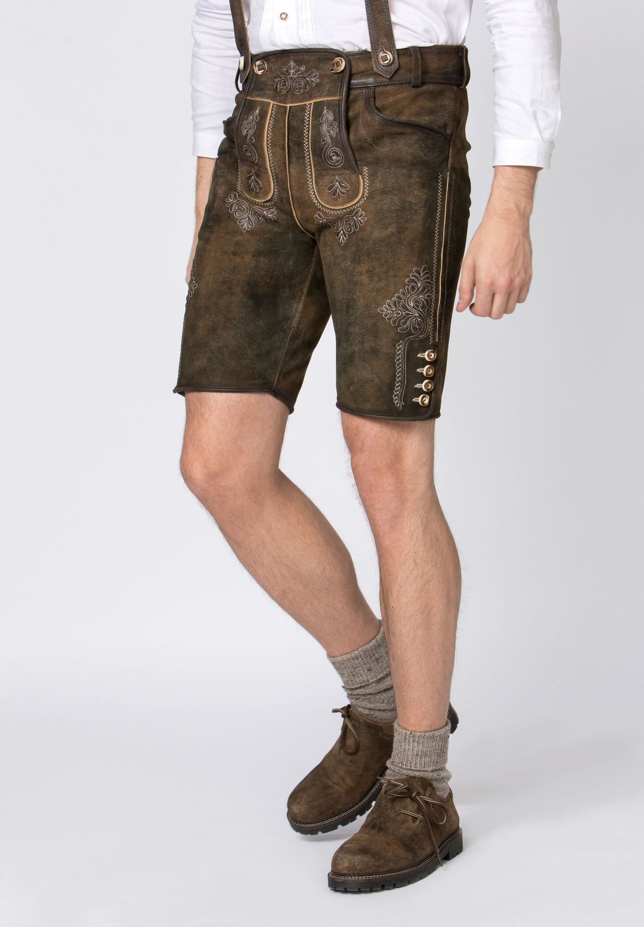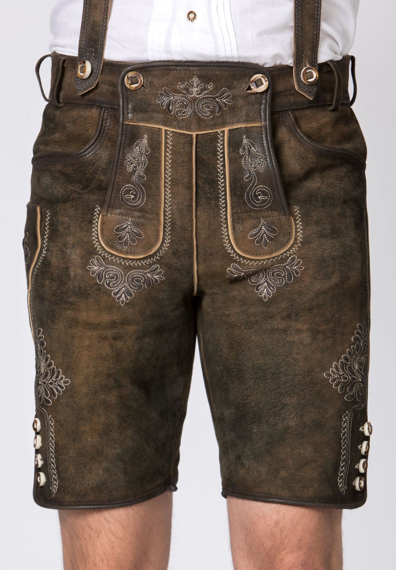 Инструкции по уходу за текстильными изделиями: не стирать, не отбеливать, не сушить в стиральной машине, не гладить, аккуратно чистить перхлорэтиленом. Материал одежды: Общий результат: 100%. кожа Содержит нетекстильные части животного происхождения: да Описание товара: традиционные ледерхозен Beppo от Stockerpoint Classics. Короткие кожаные брюки из высококачественной дубленой кожи дикого оленя с имитацией оленя отличаются необычной структурой и прекрасно гармонируют с характерными роговыми пуговицами. Это самые покупаемые традиционные ледерхозены. Традиционная вышивка незаметно находится на переднем плане и придает модели типичный характер. К брюкам прилагается соответствующий H-образный ремешок. Он универсален и прекрасно сочетается со многими классическими традиционными нарядами. Особенные характеристики: ремешки в комплекте 100% натуральная кожа в комплекте ремешки Шнуровка на шнуровке задняя часть пояса Детали ручной работы и лучшее качество изготовления Длина брюк: шорты
