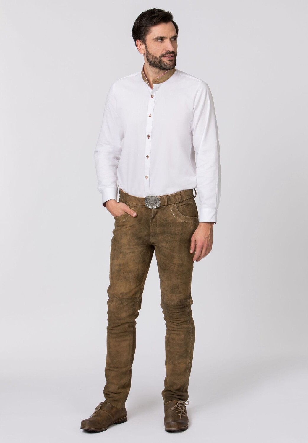 Традиционные ледерхозены Rocco от Stockerpoint Classics. Длинные кожаные брюки из высококачественной дубленой кожи оленя под оленя отличаются необычной структурой и прекрасно гармонируют с классическими роговыми пуговицами. Традиционная вышивка незаметно находится на переднем плане и придает модели типичный характер. Брюки дополнены ремнем и пряжкой с изображением оленя цвета старинного серебра. Он универсален и прекрасно сочетается со многими традиционными нарядами.