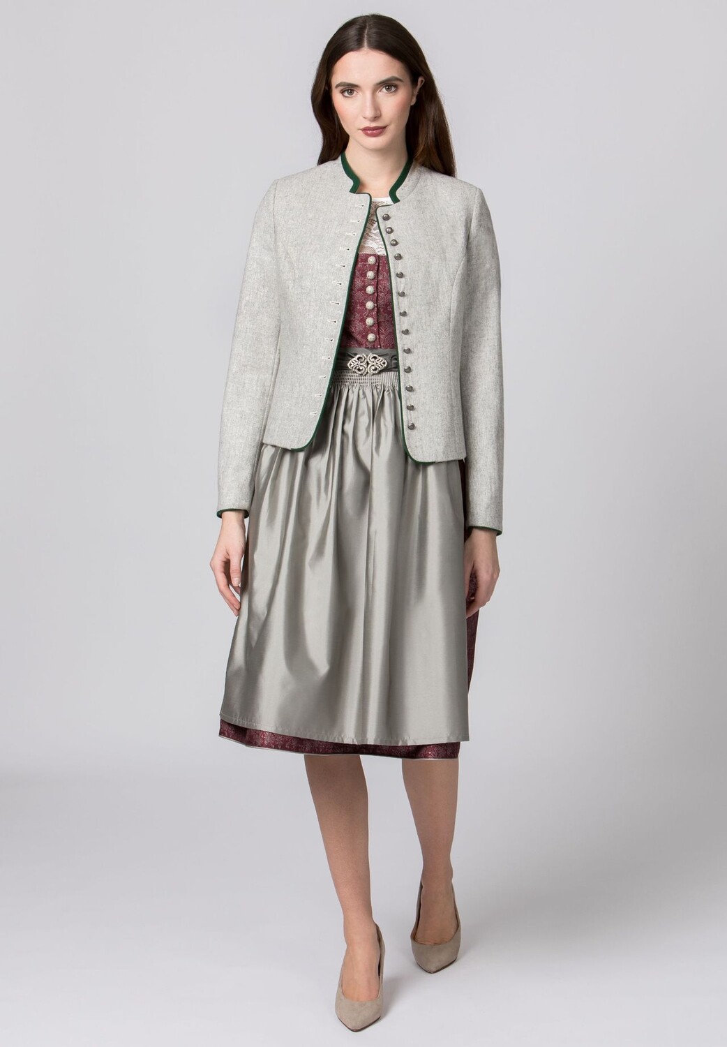 Традиционный жакет Элизабет от Heimatgwand. Куртка из высококачественной легкой ткани лоден создает женственный силуэт. Индивидуально подобранный крой с баской обеспечивает хорошую фигуру и его можно комбинировать разными способами. Классический двухцветный воротник-стойка и контрастная окантовка характеризуют этот традиционный «базовый образ» и делают его вашим постоянным спутником.