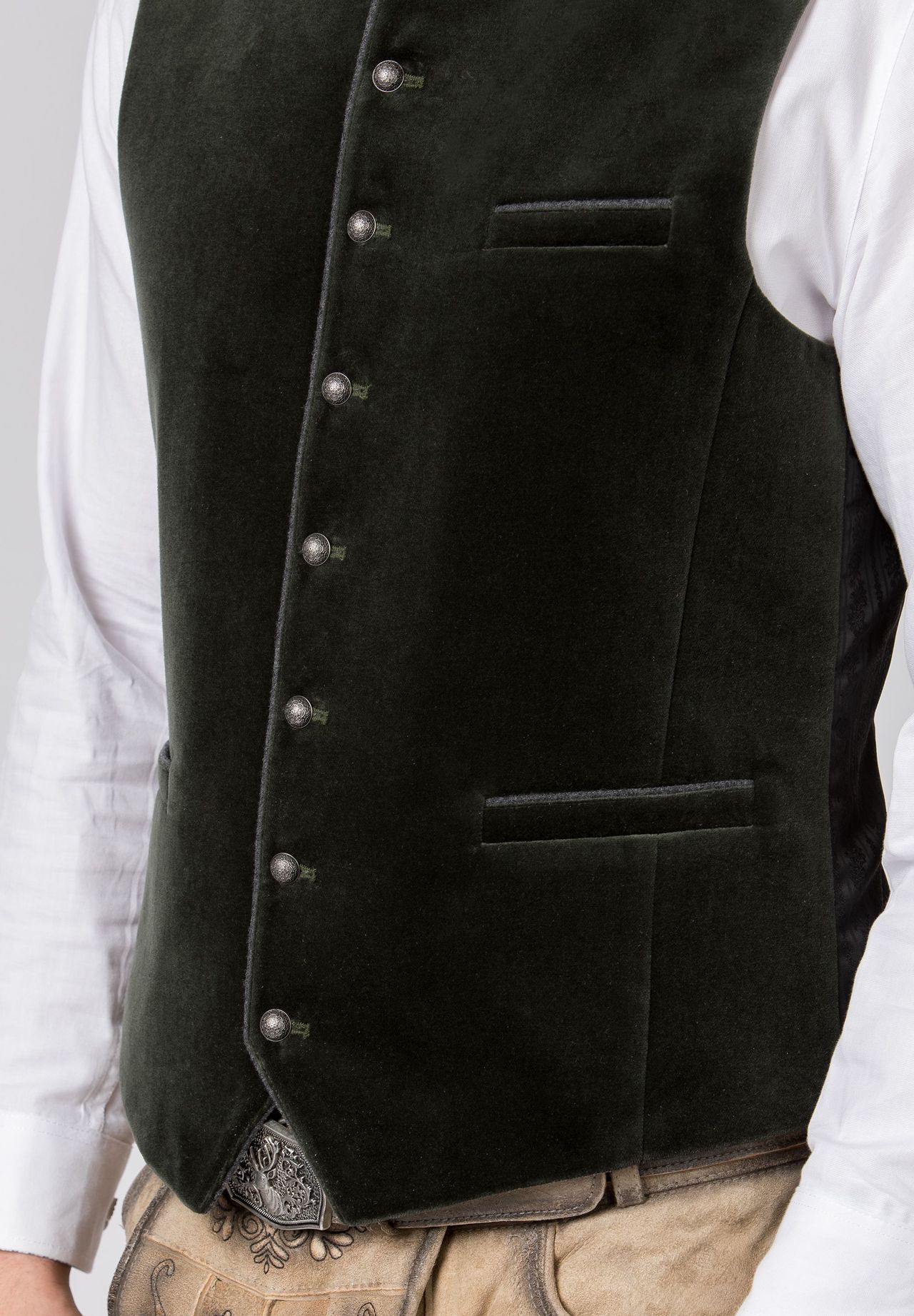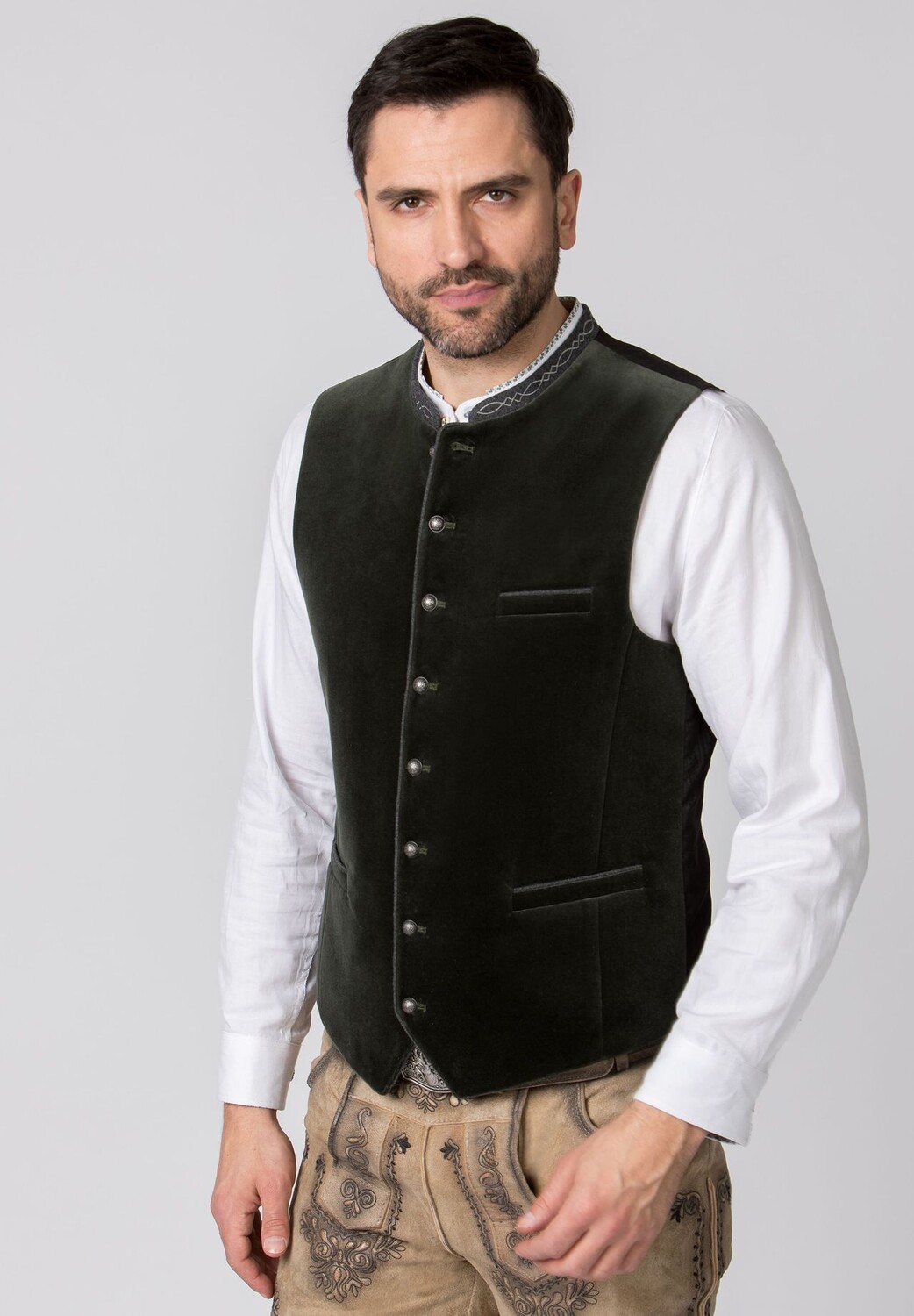Традиционный жилет Лоренцо от Stockerpoint Classics. Классический жилет из высококачественного хлопкового бархата – это классика среди традиционных жилетов. Воротник-стойка выполнен из высококачественной ткани лоден с тонкой вышивкой и характеризует неповторимый стиль. Цветная окантовка подчеркивает традиционный дизайн. Классический прямой крой гарантирует очень хорошую и удобную посадку. Спинка выполнена из эксклюзивного жаккардового полотна в черную полоску и регулируется с помощью планки. Рельефные шариковые пуговицы из состаренного серебра искусно дополняют элегантный внешний вид. Традиционный жилет – идеальное сочетание с нашими традиционными рубашками и ледерхозенами. Все новое и в то же время часть дома.