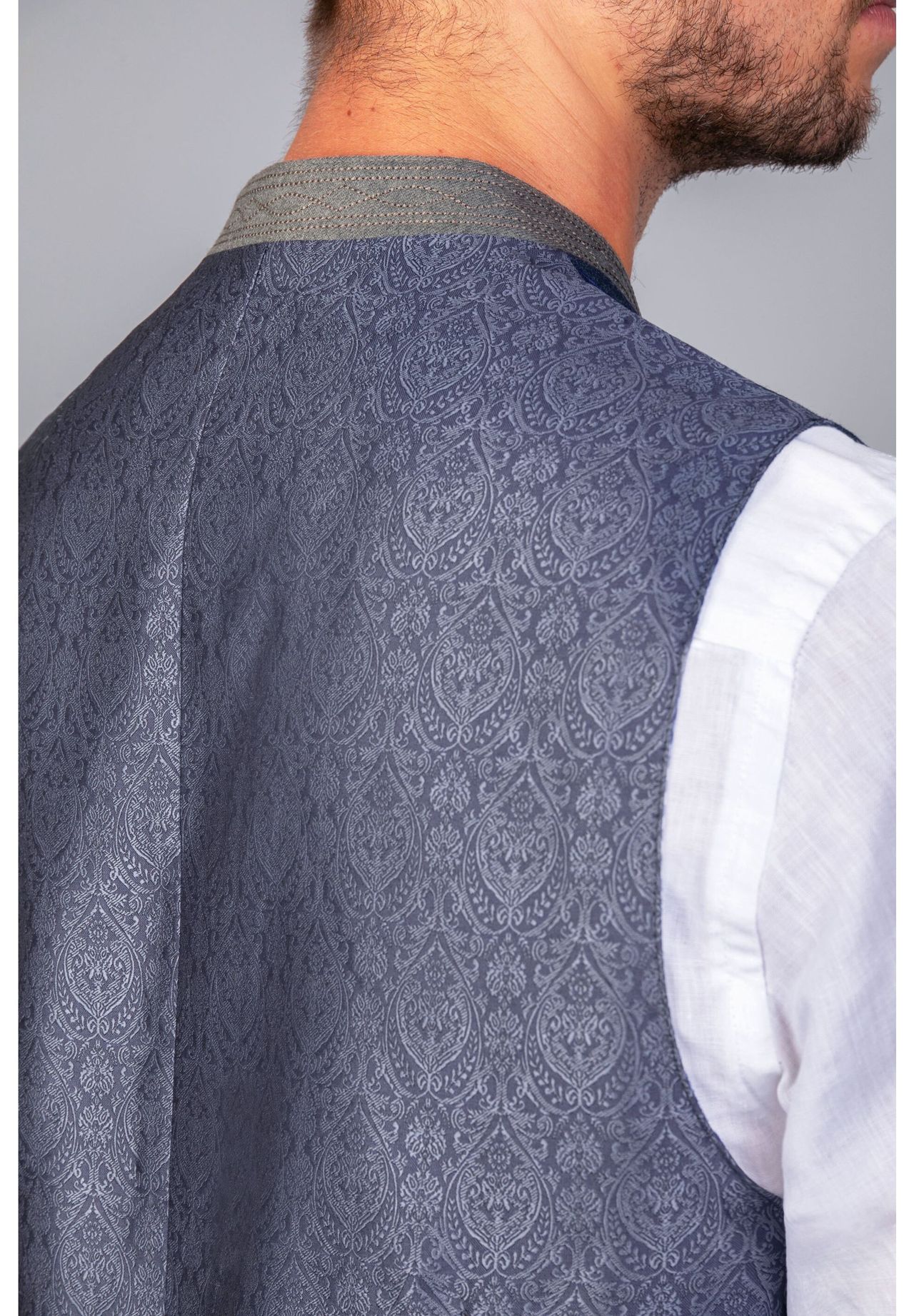 Традиционный христианский жилет сочетает в себе высококачественные материалы и изящные детали. Незаменимая вещь для мужчин, следящих за стилем. Особенности продукта: • Верхняя ткань: тонкая синяя шерсть для комфорта и стиля. • Воротник: Искусно вышитый, подчеркивающий элегантность. • Пуговицы: Традиционные металлические пуговицы серебристого цвета. • Спинка: жаккардовая ткань с рисунком, привлекающая внимание. Традиционный христианский жилет – это не просто предмет одежды, а выражение стиля и характера. Идеально подойдет для торжества, свадьбы или стильного появления на очередном фольклорном празднике.
