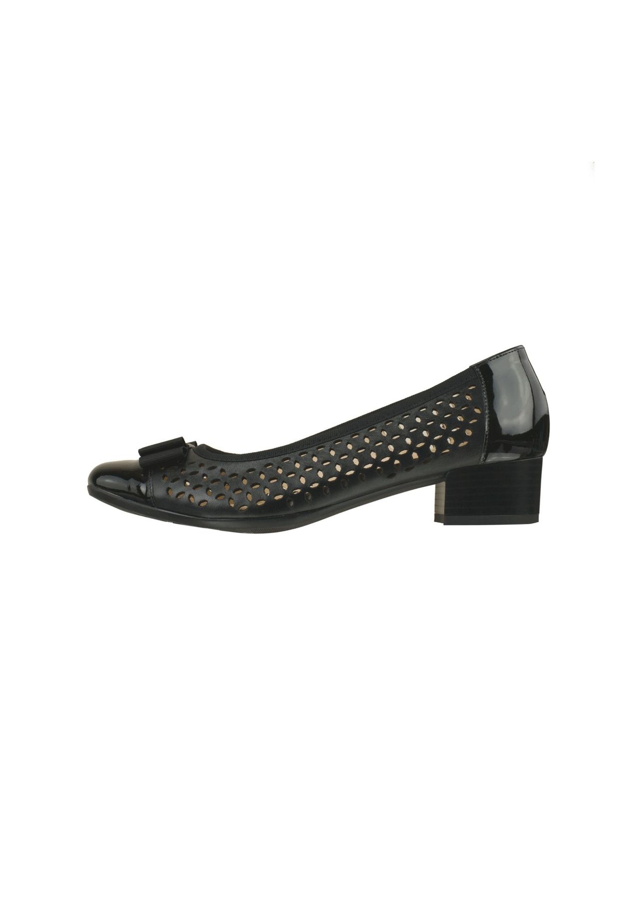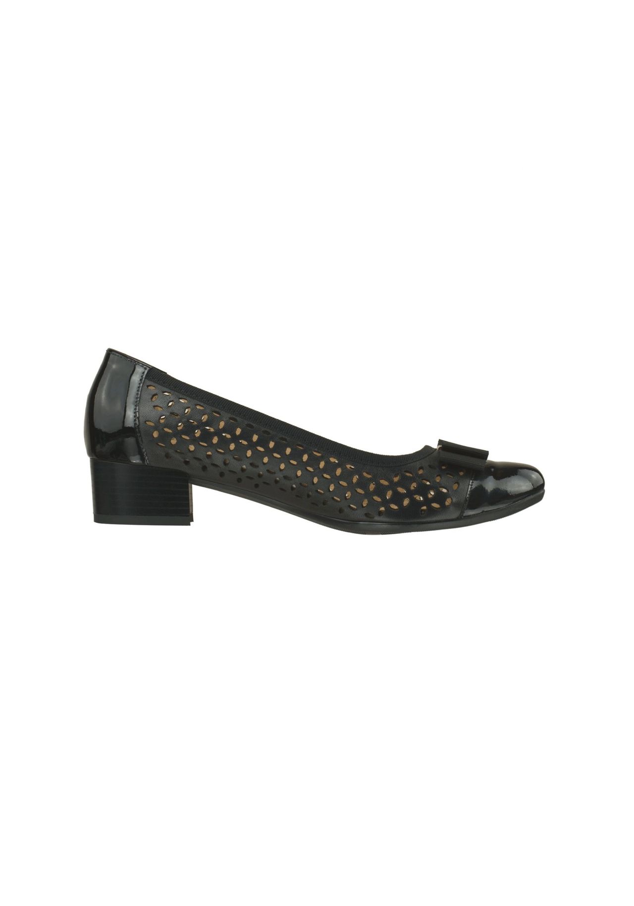 Материал верха: Кожа Материал стельки: Текстиль Материал подошвы: Синтетика Подкладка: Кожа Описание товара: Туфли Sophia расставляют акценты своим особенным внешним видом. Сочетание натуральной кожи с лакированным внешним видом делает эту модель невероятно популярной. Привлекательная перфорация – эффектная и стильная деталь этих очаровательных туфель. Натуральная кожа обеспечивает приятный микроклимат в обуви в любое время, даже в теплые дни. Туфли Sophia, украшенные декоративным бантом, станут великолепным спутником как в повседневной офисной жизни, так и на торжественных мероприятиях. Ширина обуви H: на полную стопу Особенности: нет информации нет профиля Мягкая обувь из высококачественной кожи Удобная стелька для максимального комфорта Комфортная ширина для широкой стопы Специальный комфорт для пяточных шпор Облегчение для чувствительных ног Целевая группа: Женщины Застежка: Открытая/скользящая Подкладкаstrong>: кожа Примечание о размере: изделие больше на размер Форма каблука: блочный каблук Носик: круглый