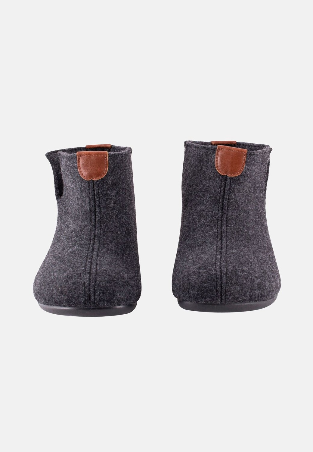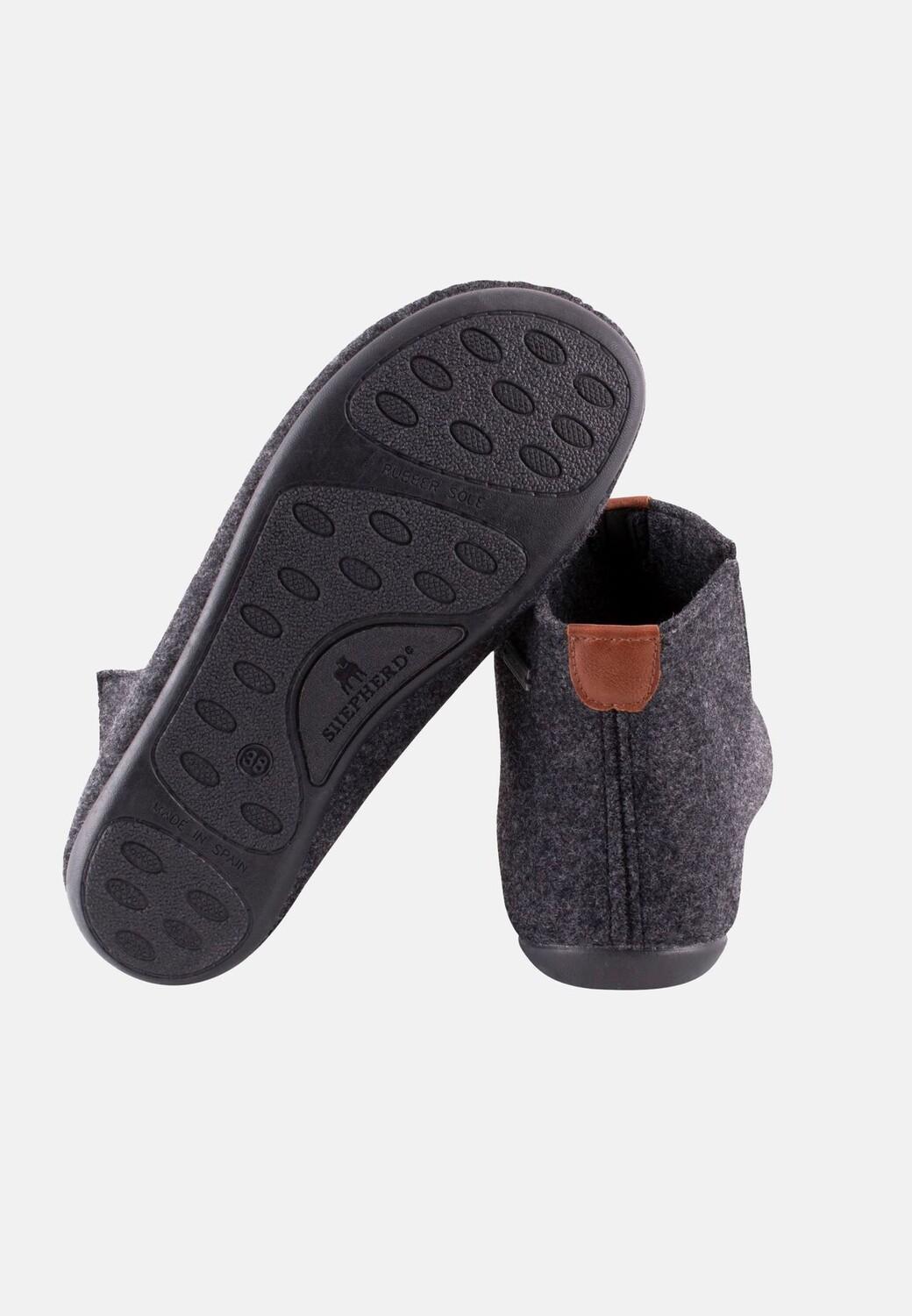 Удобные мужские тапочки Erik из шерсти обеспечивают оптимальный комфорт. Модель высотой до щиколотки впечатляет небольшими боковыми разрезами, видимым швом спереди и кожаными деталями на голенище. Стелька изготовлена ​​из мягкой шерсти, а подошва из резины.