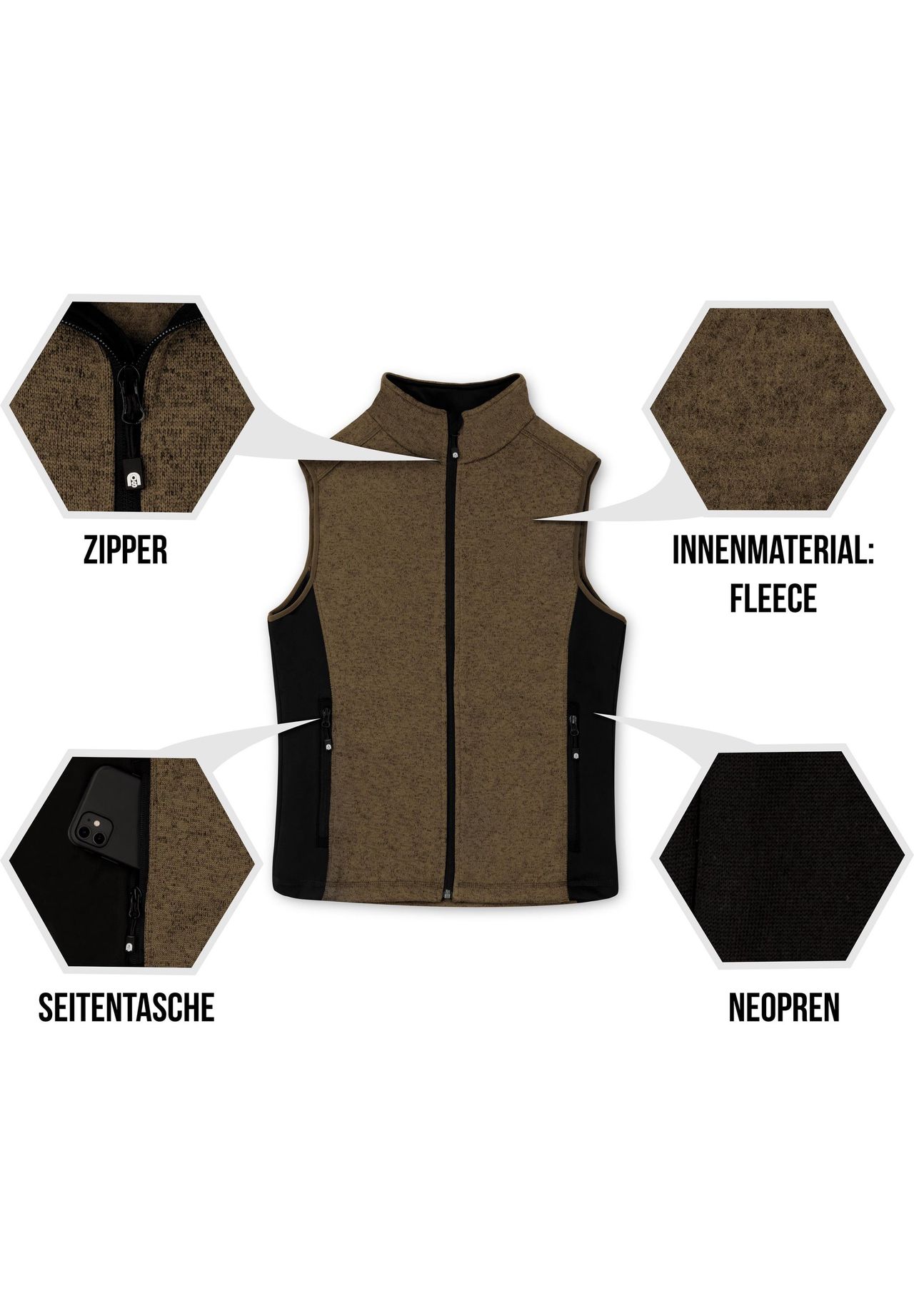 Удобный, теплый вязаный флисовый жилет с привлекательным дизайном и полезными деталями. Верный спутник, когда дни станут холоднее или температура снова поднимется после холодов. Внутренняя часть покрыта флисовым слоем. Прочная трикотажная флисовая поверхность имеет приятную гладкую вязку, поэтому вы не зацепитесь за ветки или за молнию под курткой. Он не только обеспечивает дополнительное тепло, но и приятно мягок для кожи. В путешествии Он очень популярен во время пеших прогулок или кемпинга, а также вечером, когда вы готовите барбекю на открытом воздухе с друзьями и семьей перед уютной лесной хижиной. Передняя молния с защитой подбородка и ветрозащитной планкой обеспечивает защиту от холода и ледяного ветра. Надежные молнии марки YKK используются для легкого открытия и закрытия передней молнии и карманов на молнии. Воротник-стойка с неопреновой отделкой внутри сохраняет шею в достаточном тепле. Неопрен с каймой по бокам поддерживает тепловой баланс и эластичность во время динамичных однодневных туров. Вязаный флисовый жилет станет идеальным верхом поверх свитера из шерсти мериноса в прохладные дни или согревающим средним слоем под дождем или жесткой курткой. 100% переработанный полиэстер. Руководствуясь приоритетами и собственными интересами, мы стараемся от компании Normani. действовать устойчиво с помощью новых, разумных производственных процессов. Помимо дизайна и функциональности, одной из наших основных ценностей является экологичность. Мы договорились с нашим поставщиком и системным партнером о современном процессе переработки, чтобы производить ткани для нашего вязаного флисового жилета из 100% переработанных ПЭТ-бутылок. Переработанная нить получается путем измельчения, промывки, плавления, повторной полимеризации, прядения и текстурирования ПЭТ-бутылок и, наконец, перерабатывается в пряжу. Благодаря переработке ПЭТ мы можем экономить ресурсы, повторно использовать отходы и избегать использования ископаемого сырья. OEKO-Tex OEKO-Tex Standard 100 гарантирует, что жилет протестирован на наличие вредных веществ и безвреден для здоровья. Это означает, что материал не содержит вредных химических веществ, таких как пестициды. Тяжелые металлы или канцерогенные красители. Помимо отсутствия вредных веществ, также проверяется долговечность и стойкость материала. Кроме того, OEKO-Tex Standard 100 отличается экологичностью, поскольку требует использования экологически чистых химикатов и производственных процессов. Инициатива по обеспечению социального соответствия бизнесу (BSCI) Мы в компании Normani OUTDOOR SPORTS стремимся гарантировать, что наша продукция не только функциональна, но также произведена с соблюдением этических и добросовестных норм. Вот почему наш вязаный флисовый жилет «Шаматтава» произведен на фабрике, сертифицированной BSCI. Сертификат BSCI означает «Инициатива по социальному соответствию бизнеса» и включает в себя различные стандарты и принципы, обеспечивающие справедливые и гуманные условия труда на фабриках. К ним относятся, среди прочего, запрет на детский труд и гарантия соответствующей заработной платы и рабочего времени. безопасность на рабочем месте и право на организацию и ведение коллективных переговоров. Производя продукцию на заводе, сертифицированном BSCI, мы можем гарантировать что наша продукция произ