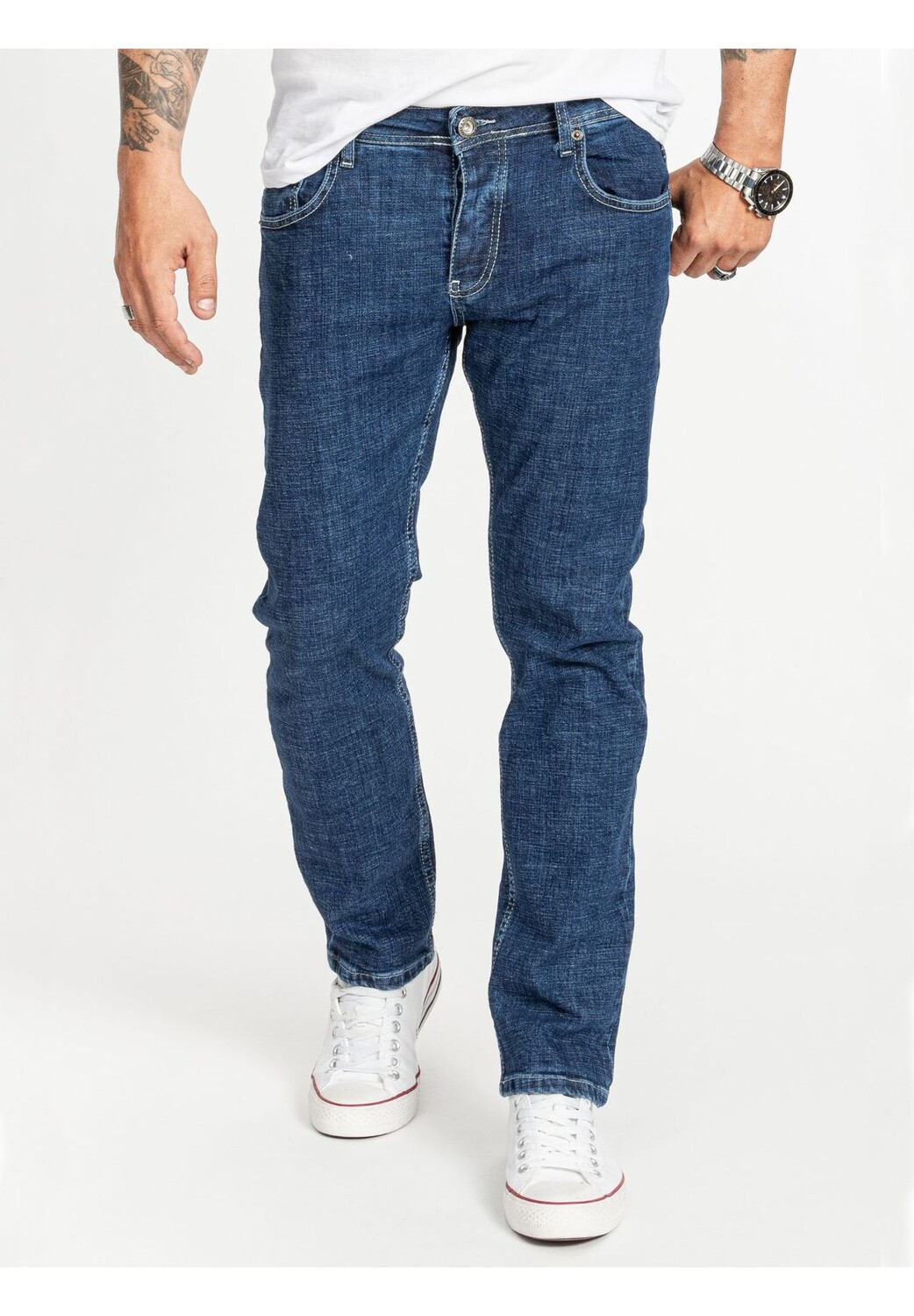 Инструкции по уходу за текстильными изделиями: Обычная стирка при 30 °C Материал одежды: Всего: 98% хлопок, 2% эластан Описание товара: Комфорт и стиль: мужские джинсы Rock Creek RC-2407 Комфортная растяжка на весь день С мужскими джинсами Rock Creek RC-2407 вы хорошо экипированы на каждый день. Эти джинсы из высококачественного эластичного денима предлагают вам непревзойденное сочетание комфорта и гибкости. Независимо от того, проводите ли вы весь день на улице или просто хотите расслабиться — эти джинсы справятся со всем. Регулярная посадка гарантирует, что она не будет ни слишком тесной, ни слишком свободной, а идеально адаптируется к вашему телу. Неподвластный времени внешний вид RC-2407 впечатляет не только удобством ношения, но и дизайном. Синий эффект потертости придает джинсам стильный, потертый вид, который никогда не выйдет из моды. Классический стиль с пятью карманами предлагает достаточно места для всего самого необходимого. а прочная застежка на пуговицах обеспечивает надежную посадку. Эти джинсы привлекают внимание, и их можно комбинировать по-разному: повседневно с футболкой или шикарно с рубашкой. Универсальные и простые в уходе мужские джинсы The Rock Creek RC-2407 не только стильные, но и практичные. Его легко стирать в машине, он сохраняет форму и цвет даже после многочисленных стирок. Эти джинсы незаменимы в каждом гардеробе и подходят практически для любого случая. Будь то для повседневной жизни Офис или особый случай – с RC-2407 вы всегда будете хорошо одеты. Особенности: Классические мужские джинсы с 5 карманами и спортивного кроя Джинсы с эластичной вставкой для дополнительного комфорта и лучшей формы Крой: обычный крой / джинсы прямого кроя Stone Washed: стирка с более крупными пемзами создает слегка поношенный вид Мужские брюки со потайной ширинкой и широкими петлями для ремня Застежка: Застежка на пуговицы Стиль: Повседневный Посадка: Прямой Передние, задние и внутренние карманы: Пять карманов Длина брюк: Длинные брюки