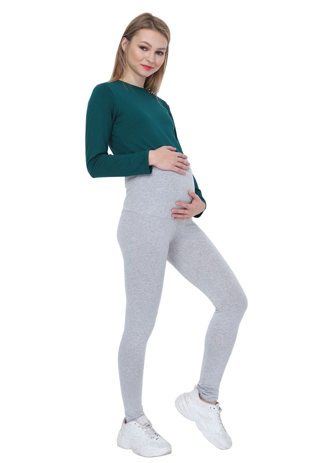 Комфортные леггинсы для беременных MAMA Благодаря идеальной посадке эти леггинсы для беременных идеально подчеркивают ваши женственные пропорции. Ткань не только очень приятна для кожи, но и идеально адаптируется к растущему животику благодаря эластичному эластичному поясу на животе. Невероятно удобные леггинсы для беременных прекрасно сочетаются с другой одеждой для беременных, например, с красивой блузкой, что позволяет легко создать модный образ на каждый день. Особенности: - Приятная мягкая и легкая хлопковая ткань - эластичный пояс для живота, который растет по мере беременности. - шов на внутренней стороне штанины - машинная стирка при 30°.