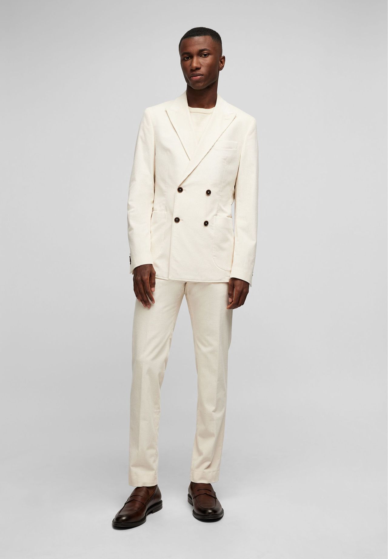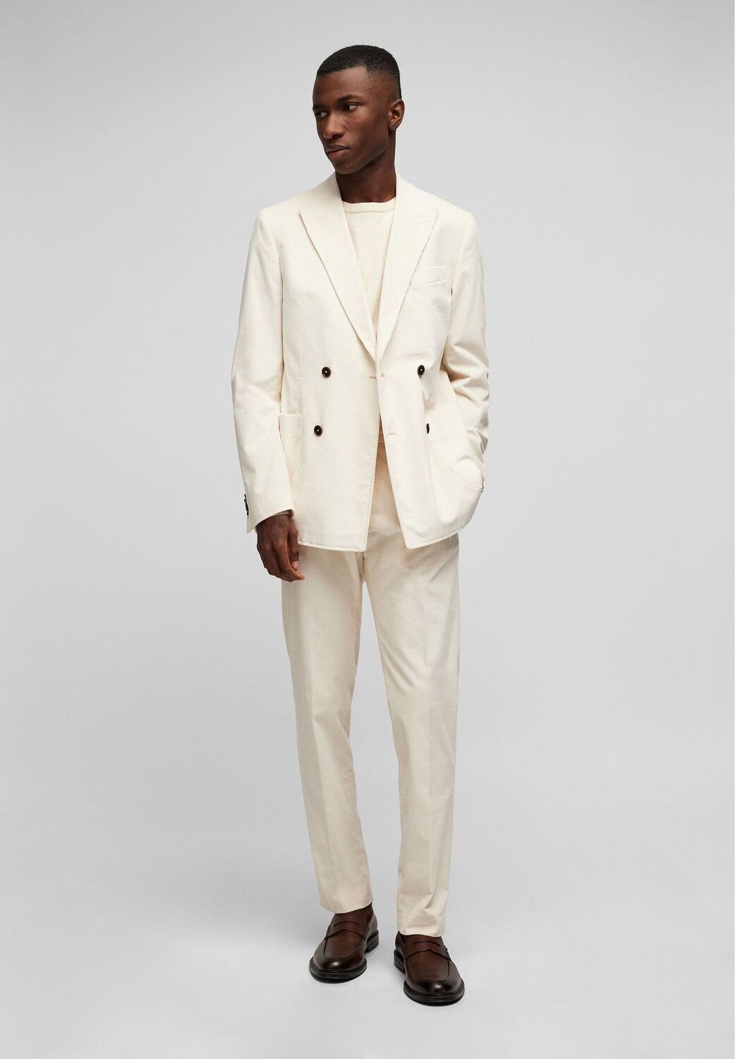 Элегантная вельветовая куртка кремового цвета от HECHTER PARIS впечатляет современным кроем H-XTENSION Comfort Leisure FIT с зубчатыми лацканами и предлагаемой петлей. Классические детали, такие как втачные рукава с пуговицами и удобные разрезы для движения в двойном дизайне, дополняются спортивными накладными карманами. Благодаря приятному эластичному хлопку однобортный костюм на двух пуговицах станет идеальным спутником в офисе или на торжественных мероприятиях.