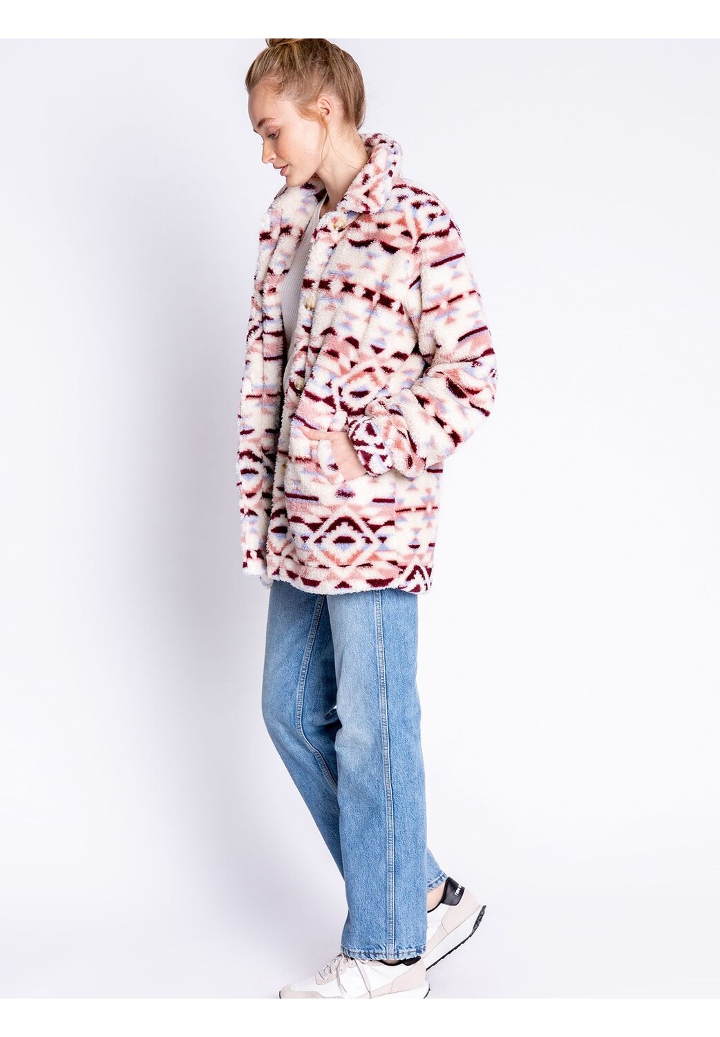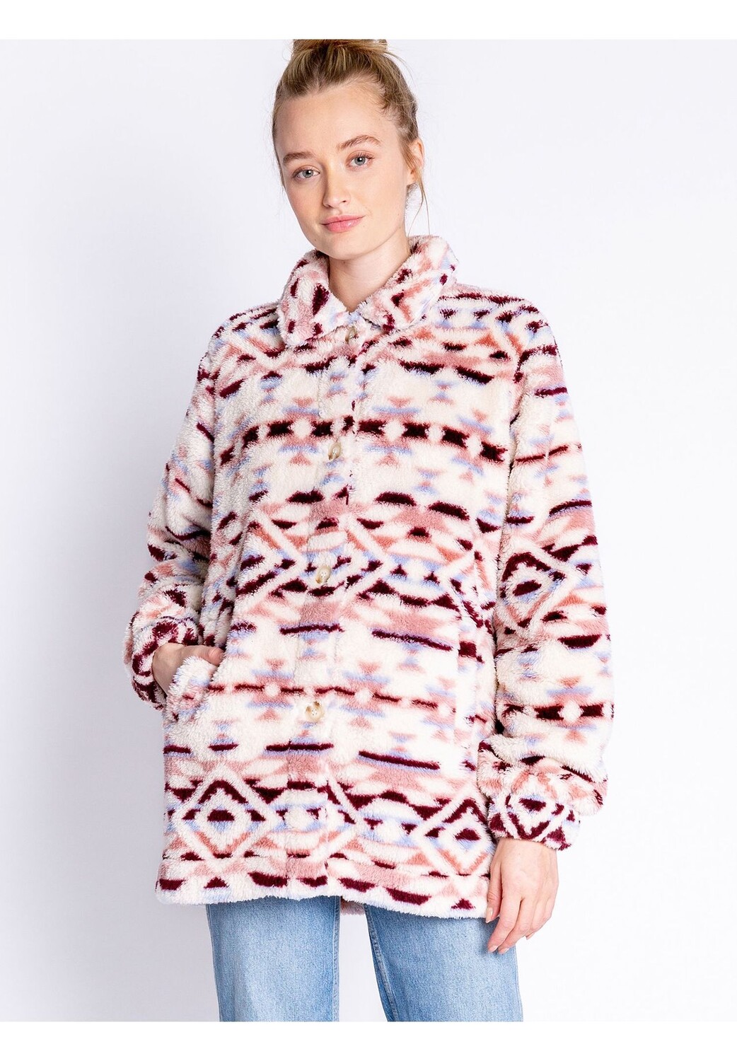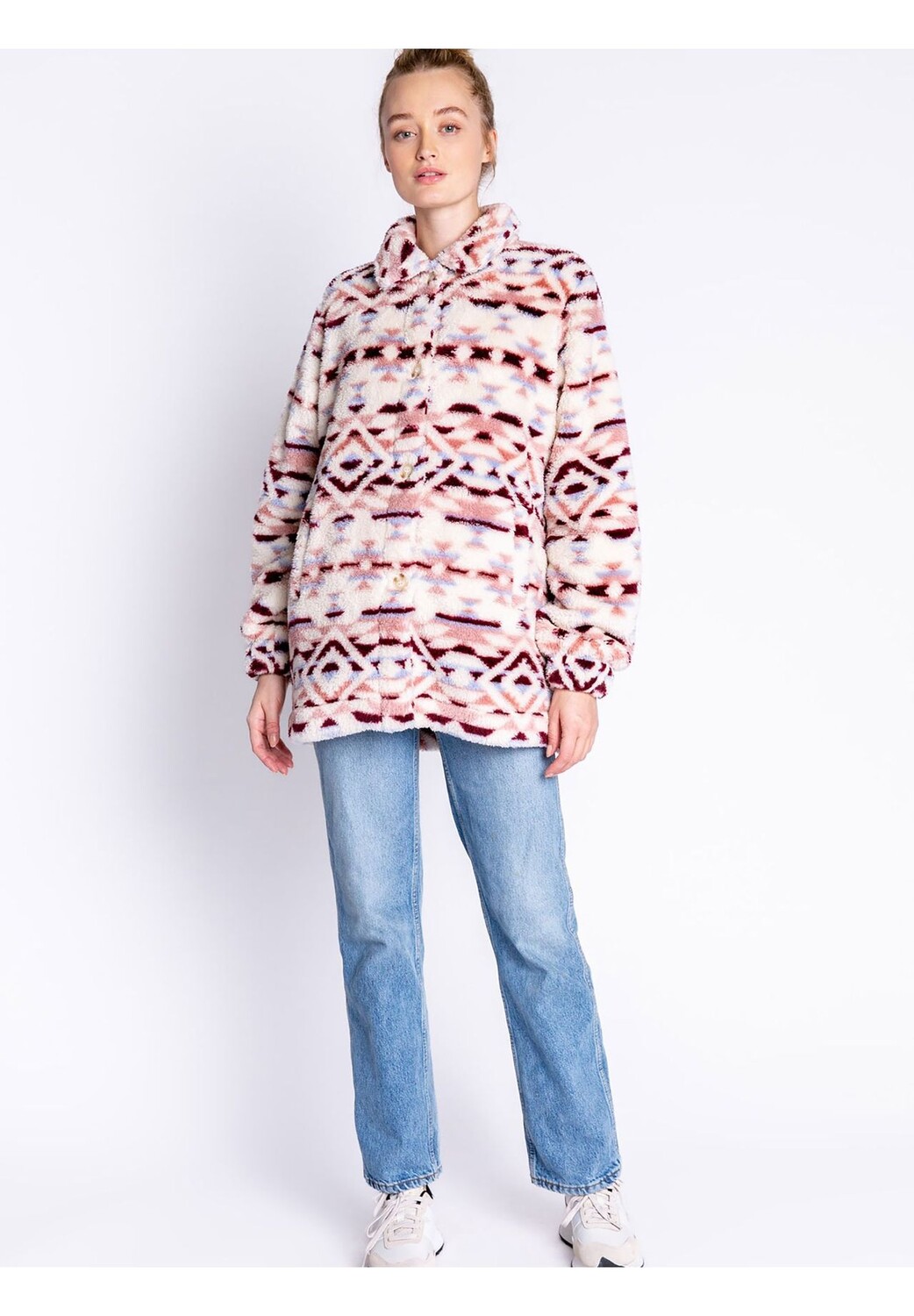 Куртка Cozy Shacket от PJ Salvage украшена игривым животным цветочным принтом и планкой на пуговицах. Манжеты со сборками и боковые карманы, очень уютные и мягкие. Правильный компаньон для уютных часов!