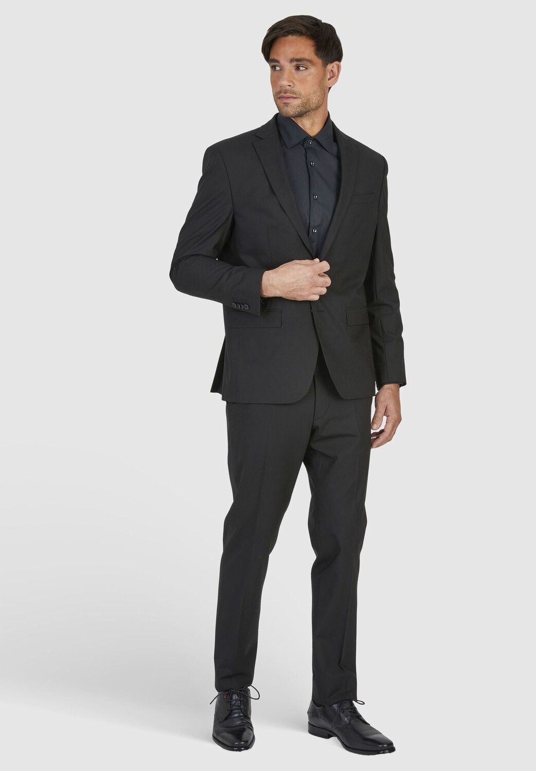 Куртка H-ECO Modern Fit от HECHTER PARIS из смесовой шерсти необычно подчеркнет любой деловой наряд или нарядный образ. Этот продукт изготовлен из экологически чистых и сертифицированных смесей волокон. Он имеет карманы с клапанами, 2 пуговицы, полностью на подкладке и имеет внутренние манжеты. Два разреза сзади и формирующие швы стильно завершают однобортный костюм. Благодаря эластичному материалу он также обеспечивает оптимальную посадку и свободу движений.
