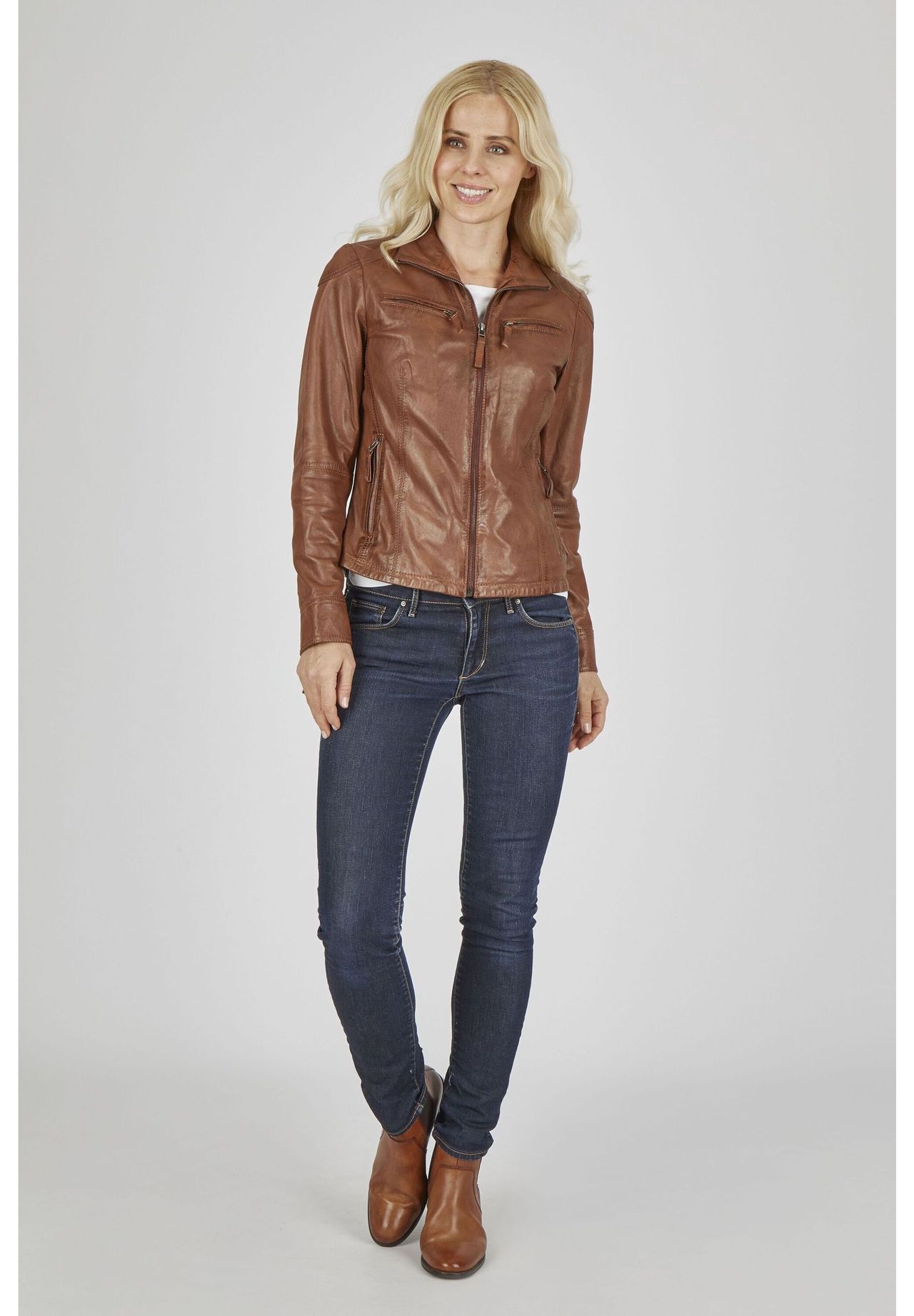 Описание товара: Эта высококачественная кожаная куртка 7ELEVEN из кожи наппа ягненка растительного дубления привлекает внимание. Слегка адаптированный крой придает современный спортивный вид. Два боковых и два нагрудных кармана, кожаные нашивки на плечах и высокий воротник расставляют модные акценты. Номер модели: SEL-Ana7E
