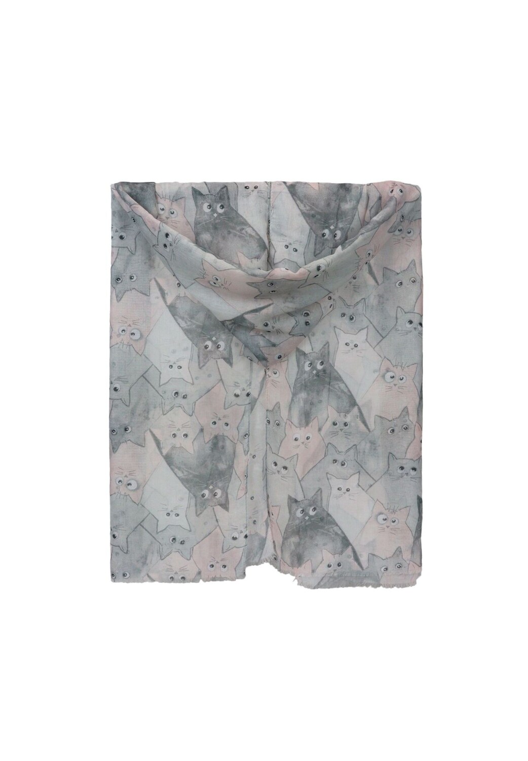 Описание товара: Легкий летний шарф с уникальным кошачьим мотивом