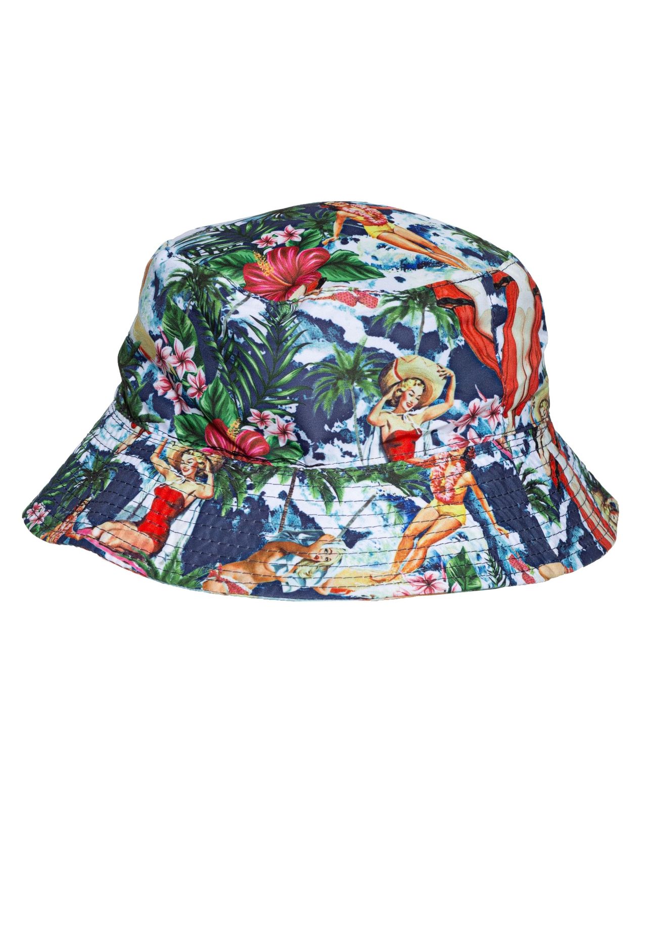 Летняя панама от King Kerosin впечатляет винтажными принтами с обеих сторон! С обеих сторон? Да, вы не ослышались! Это двусторонняя шляпа, поэтому вы сами решаете, какая из двух сторон лучше всего подойдет к вашему сегодняшнему наряду. Панама изготовлена из прочного дышащего полиэстера и имеет стеганые поля, защищающие от солнца. Небольшой вес и универсальный размер (верхний диаметр 17 см и средний диаметр 20 см) обеспечивают удобную посадку. Настоящая вещь от King Kerosin, которая изменит ваш образ!