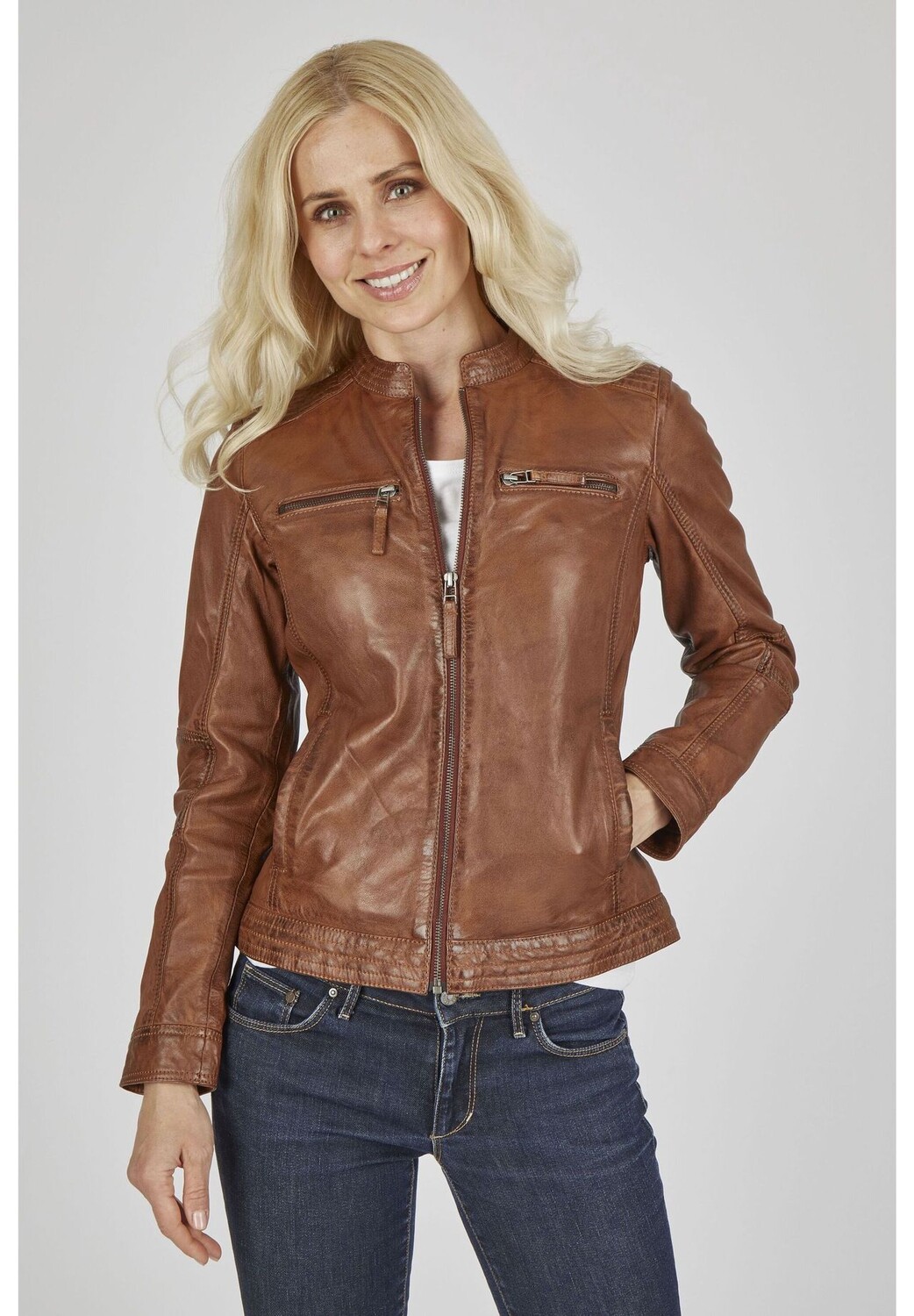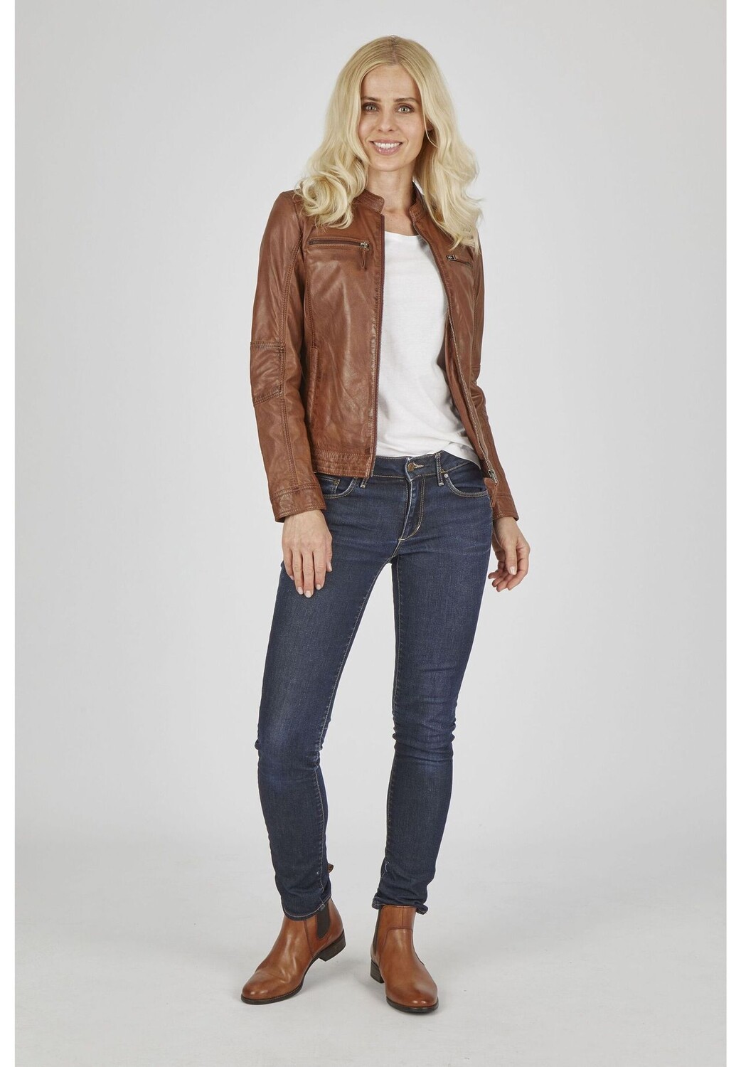 Описание товара: Эта короткая ультрамодная кожаная куртка от 7ELEVEN изготовлена ​​из невероятно мягкой ягненка наппа растительного дубления. Привлекают внимание непринужденная стежка на воротнике и плечах, а также высококачественные кожаные ремни на молнии. Отличная куртка, которая подойдет ко всему! Номер модели: SEL-Sanny7E