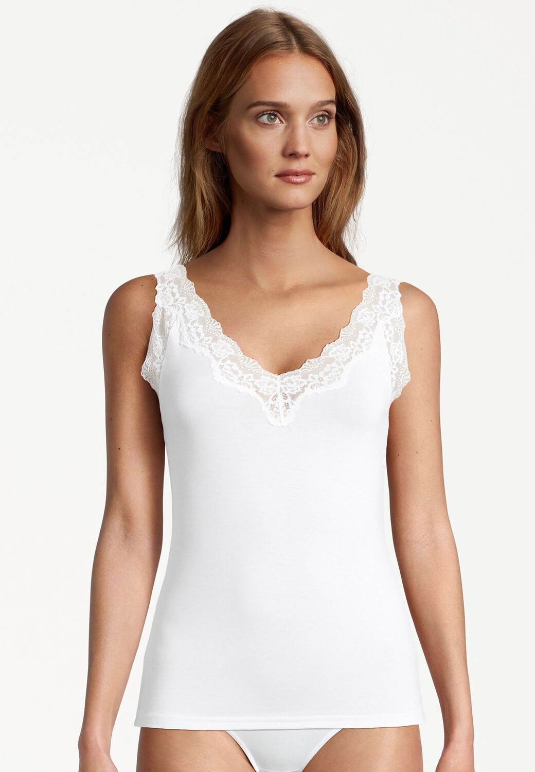 Описание товара: Эта майка из мягкого, эластичного материала обеспечивает высочайший уровень комфорта. Он производится экологически рационально и экономит ресурсы. Концы выразительного цветочного кружева очень мягкие и придают изделию романтический вид. Благодаря хорошей посадке это идеальное дополнение к повседневному образу, придающее нотку элегантности.
