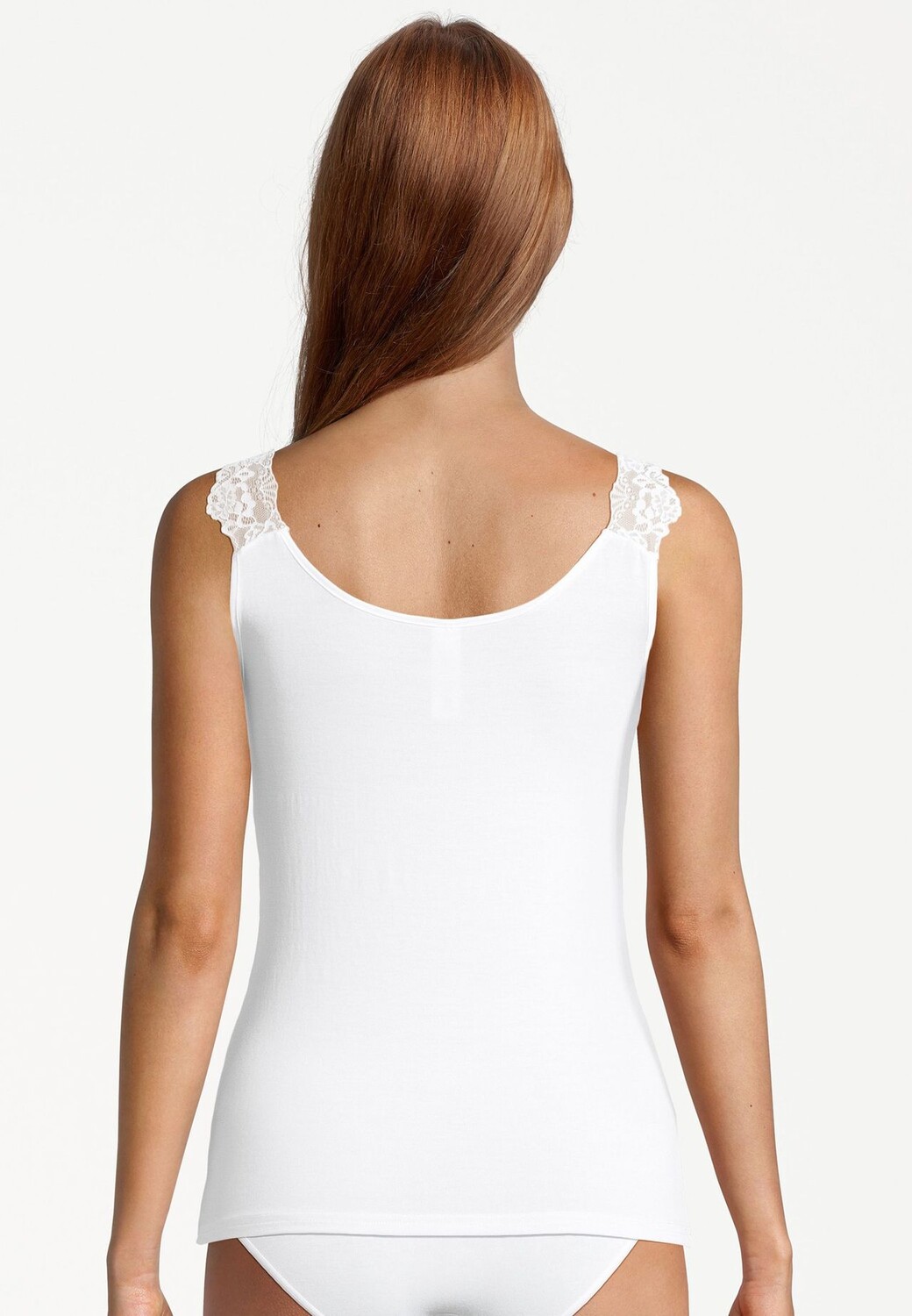 Эта майка из мягкого, эластичного материала обеспечивает высочайший уровень комфорта. Он производится экологически рационально и экономит ресурсы. Концы выразительного цветочного кружева очень мягкие и придают изделию романтический вид. Благодаря хорошей посадке это идеальное дополнение к каждому дню, придающее нотку элегантности.