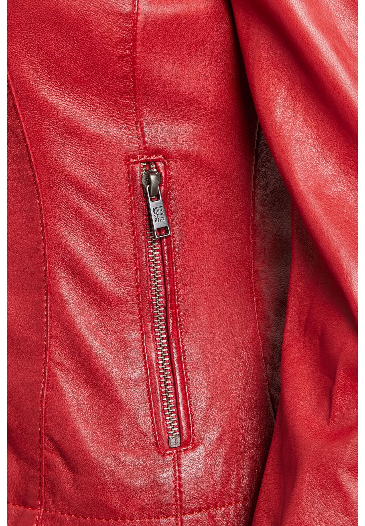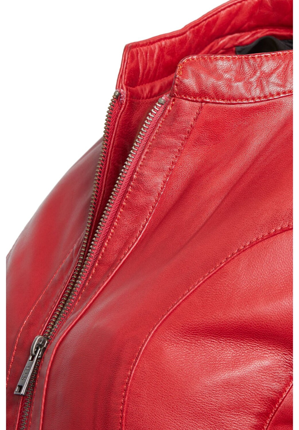 Эта модная женская кожаная куртка сочетает в себе стильный дизайн и первоклассное качество. Изготовленная из высококачественной овечьей кожи, она обеспечивает элегантный внешний вид и долговечность. Модные декоративные швы и элегантный воротник-стойка придают куртке неподвластный времени вид, который можно сочетать как повседневно, так и шикарно. Два боковых кармана на молнии обеспечивают практичное место для хранения и функционально дополняют дизайн. Тонкое нанесение логотипа подчеркивает эксклюзивность куртки и подчеркивает высокие стандарты качества. Идеально подходит для следящих за модой женщин, которые ищут универсального и роскошного спутника на любой случай.