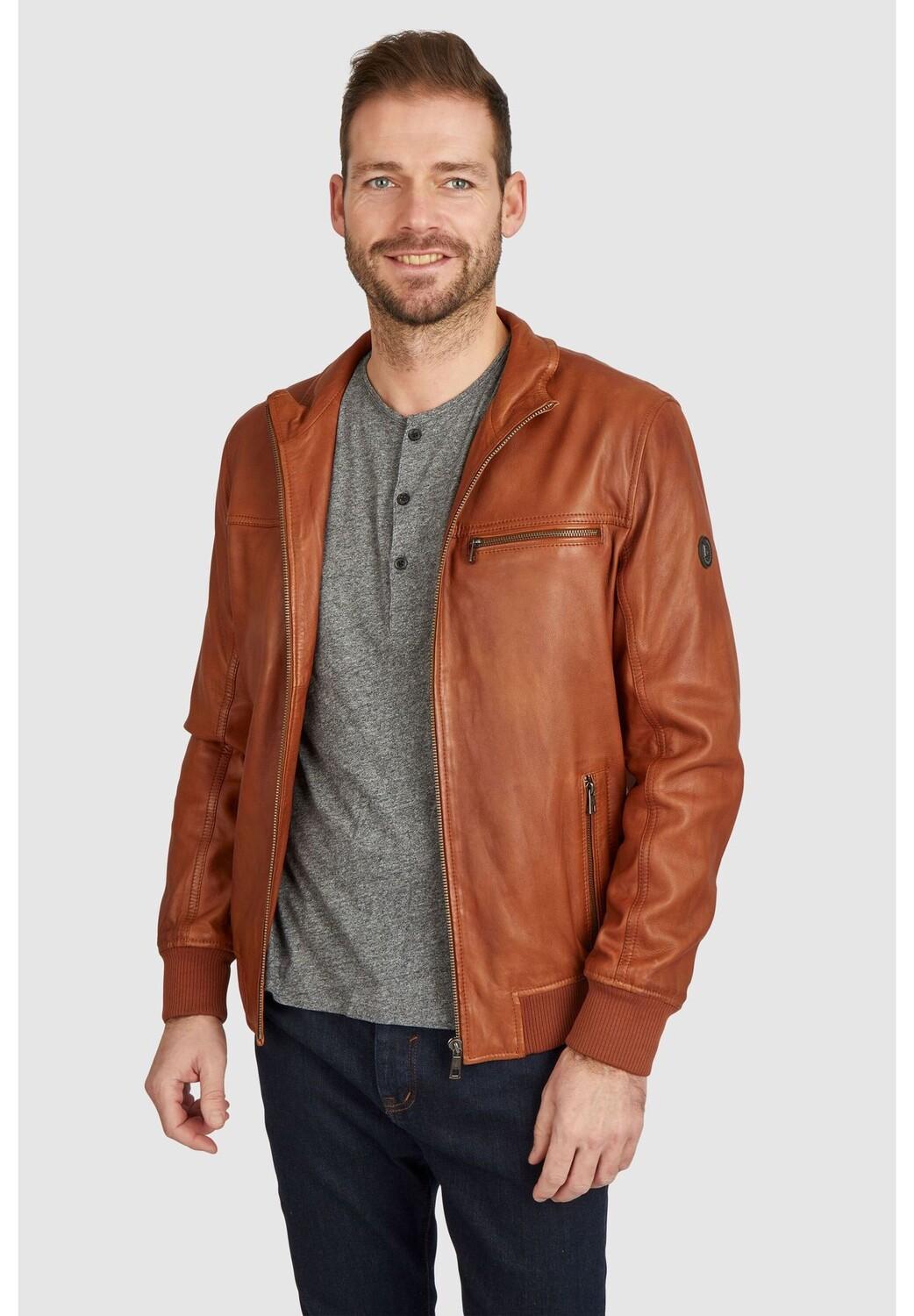 Эта мужская кожаная куртка сочетает в себе классическую форму воротника-стойки с современными акцентами, такими как ребристые манжеты и нижний край, создавая легкий вид университетской куртки. Нежные декоративные швы и карманы на молнии — еще одна модная деталь. Благодаря удобной посадке и высококачественной коже в плане комфорта при ношении нет ничего лучшего. Эта кожаная куртка всегда работает! Номер модели: BUG-Леонардо