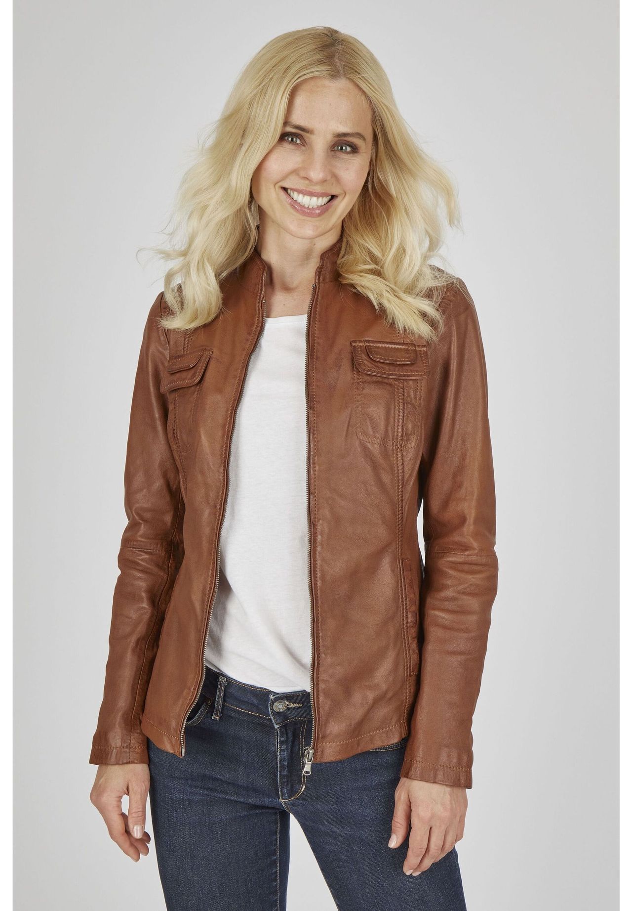 Эта повседневная кожаная куртка от 7ELEVEN изготовлена из высококачественной кожи ягненка наппа растительного дубления. Слегка скроенный крой, карманы с клапанами на груди и модный воротник-стойка создают неподвластный времени спортивный образ. При этом модель предлагает высокий уровень комфорта и достаточную свободу движений. Номер модели: SEL-Felida7E