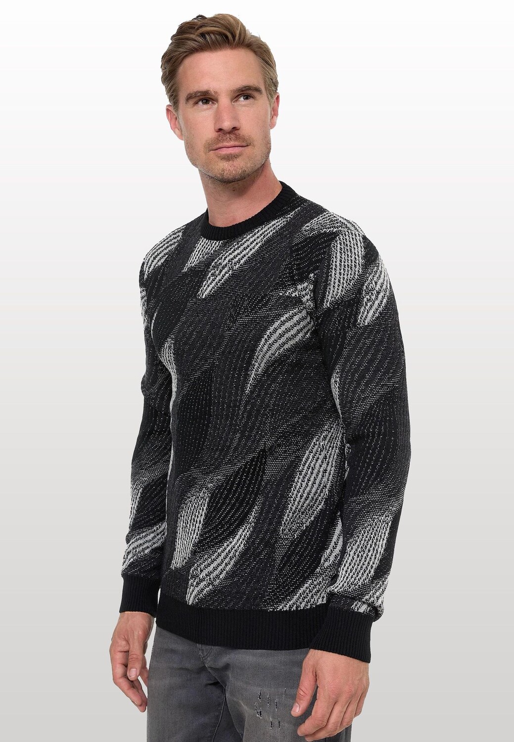 Модный вязаный мужской свитер Rusty Neal впечатляет современным волнистым дизайном. Он также изготовлен из мягкой, высококачественной и эластичной хлопчатобумажной ткани, что гарантирует абсолютно идеальную посадку. Благодаря качественному исполнению материалов после стирки цвет не теряется, а усадка свитера больше не проблема! Этот универсальный свитер гарантирует стильный внешний вид, как для элегантного ношения в офисе, так и для повседневного ношения днем. Он впечатляюще показывает, насколько современным и в то же время вневременным может быть свитер. Рост модели 1,85 м, вес около 80 кг, размер M (средний).