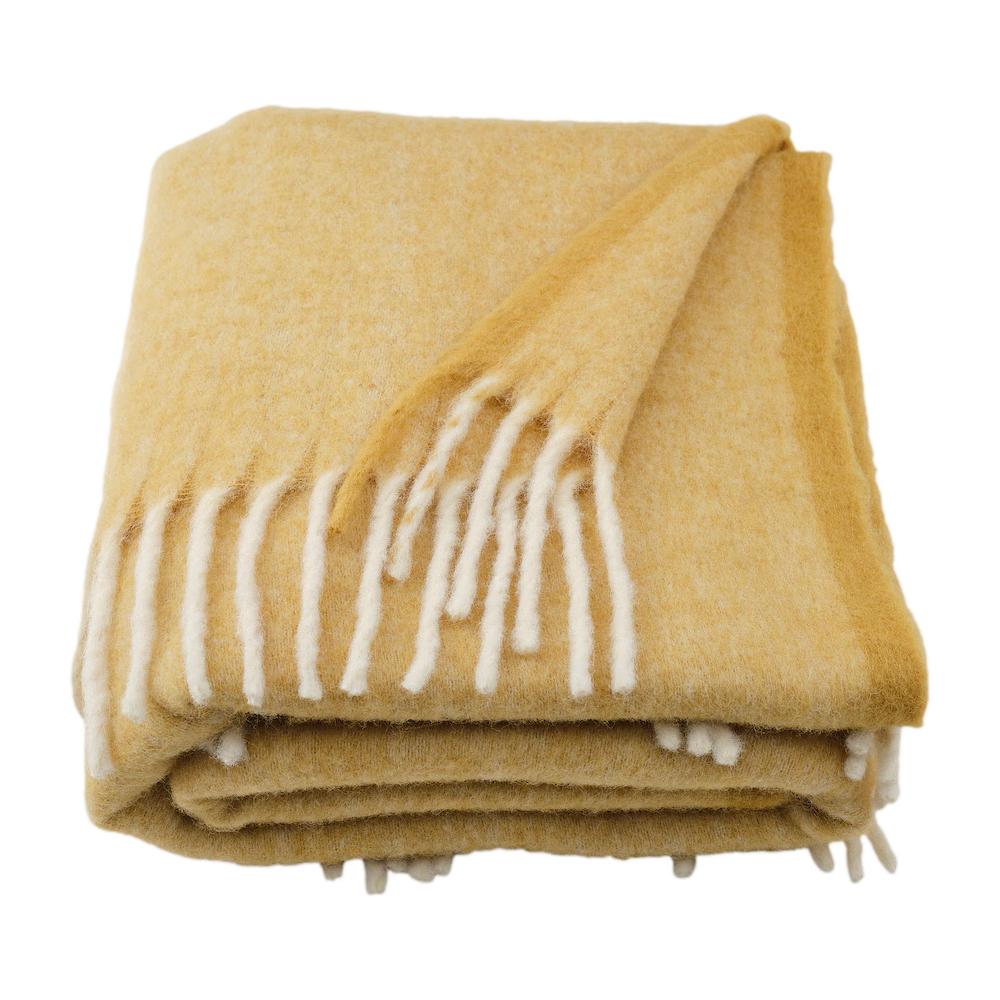 Мягкий, пушистый и легкий плед бежево-желтого цвета, окрашенный под пряжу, напоминает мохер и сохраняет тепло. Сделан из прочного переработанного полиэстера, быстро сохнет и сохраняет форму даже после стирки.