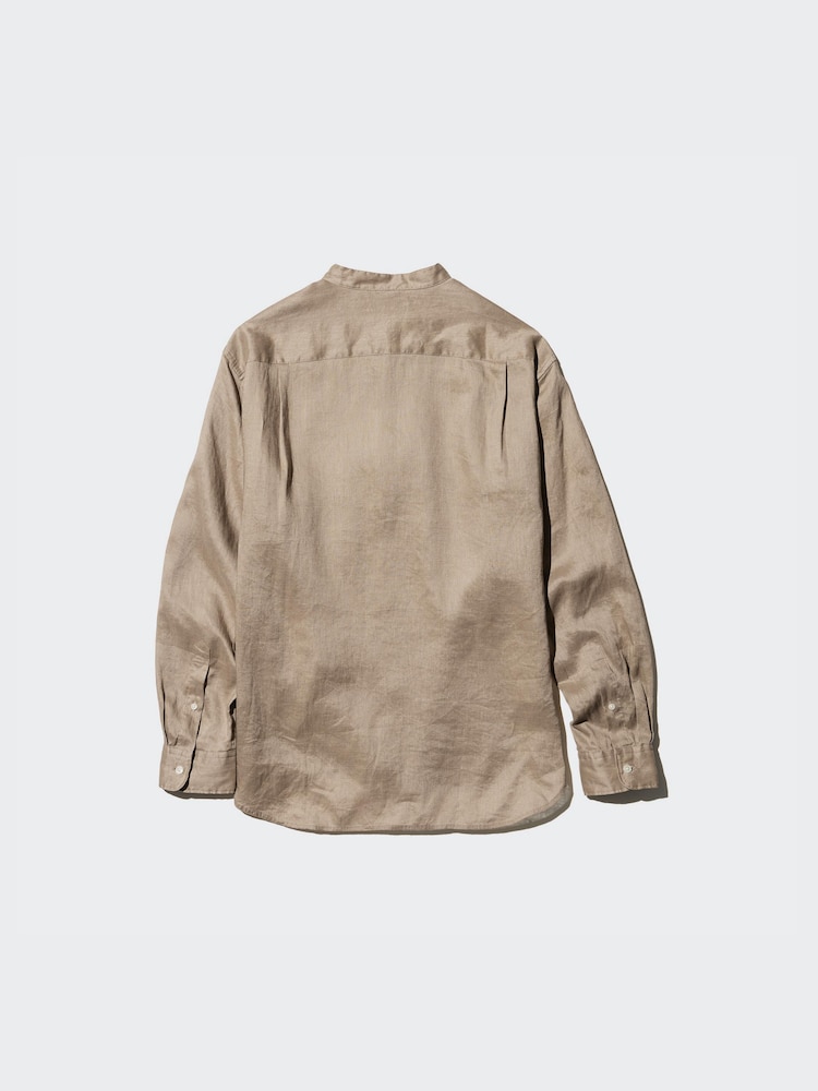 Рубашка из 100% льна, воротник-стойка Uniqlo, цвет 09 черный 7 279₽