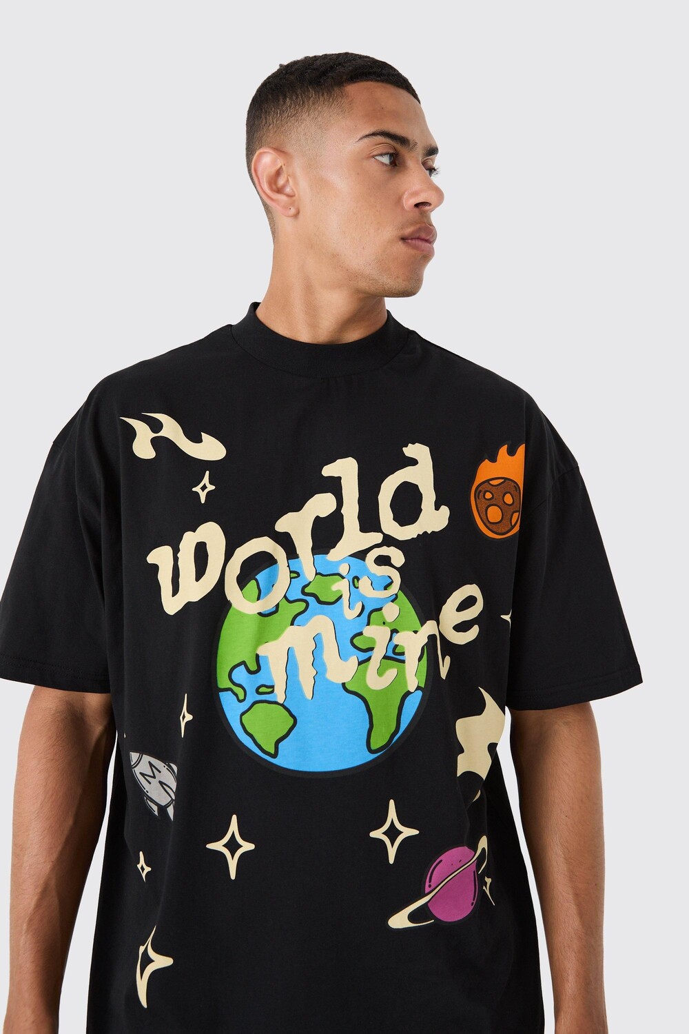 Футболка оверсайз BoohooMAN с космическим рисунком, черный