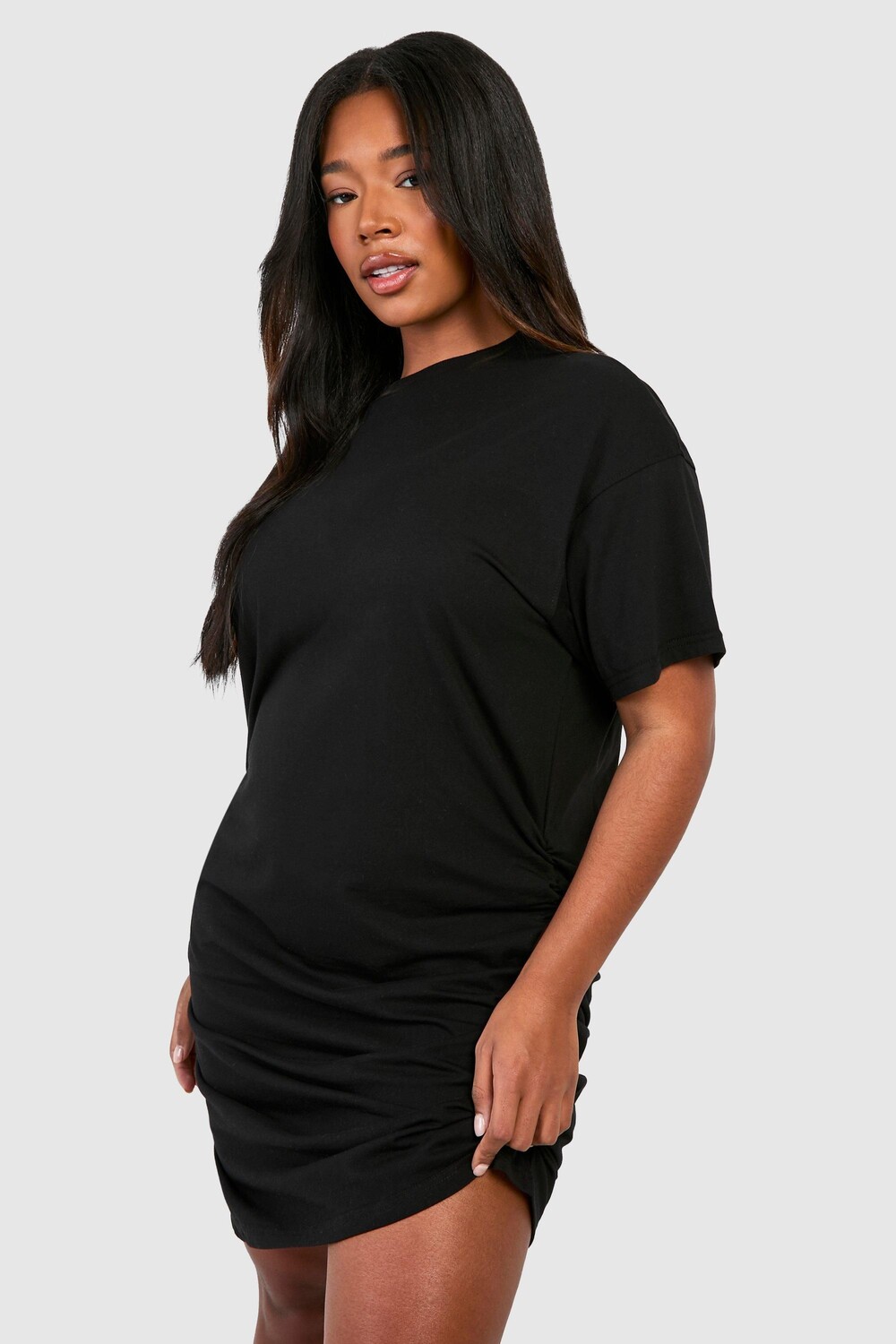 Платье-футболка Boohoo со сборками, черный 3 408₽