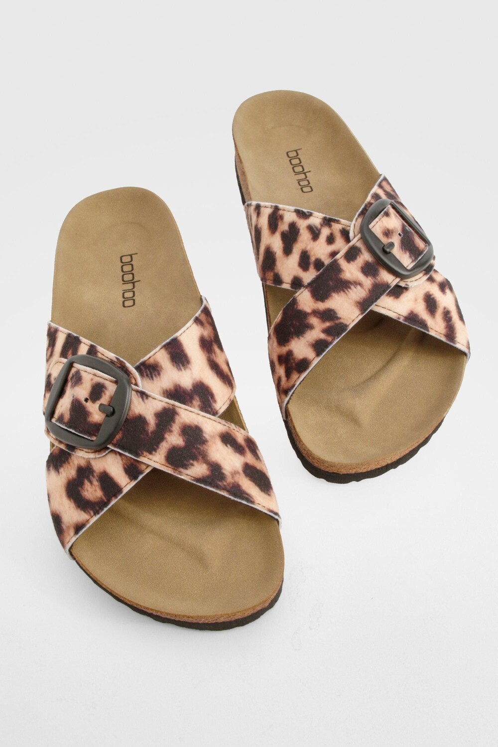 Сандалии Boohoo с леопардовым принтом и перекрестной стелькой