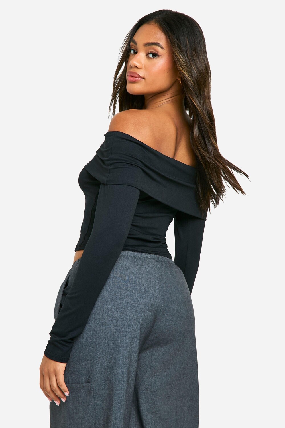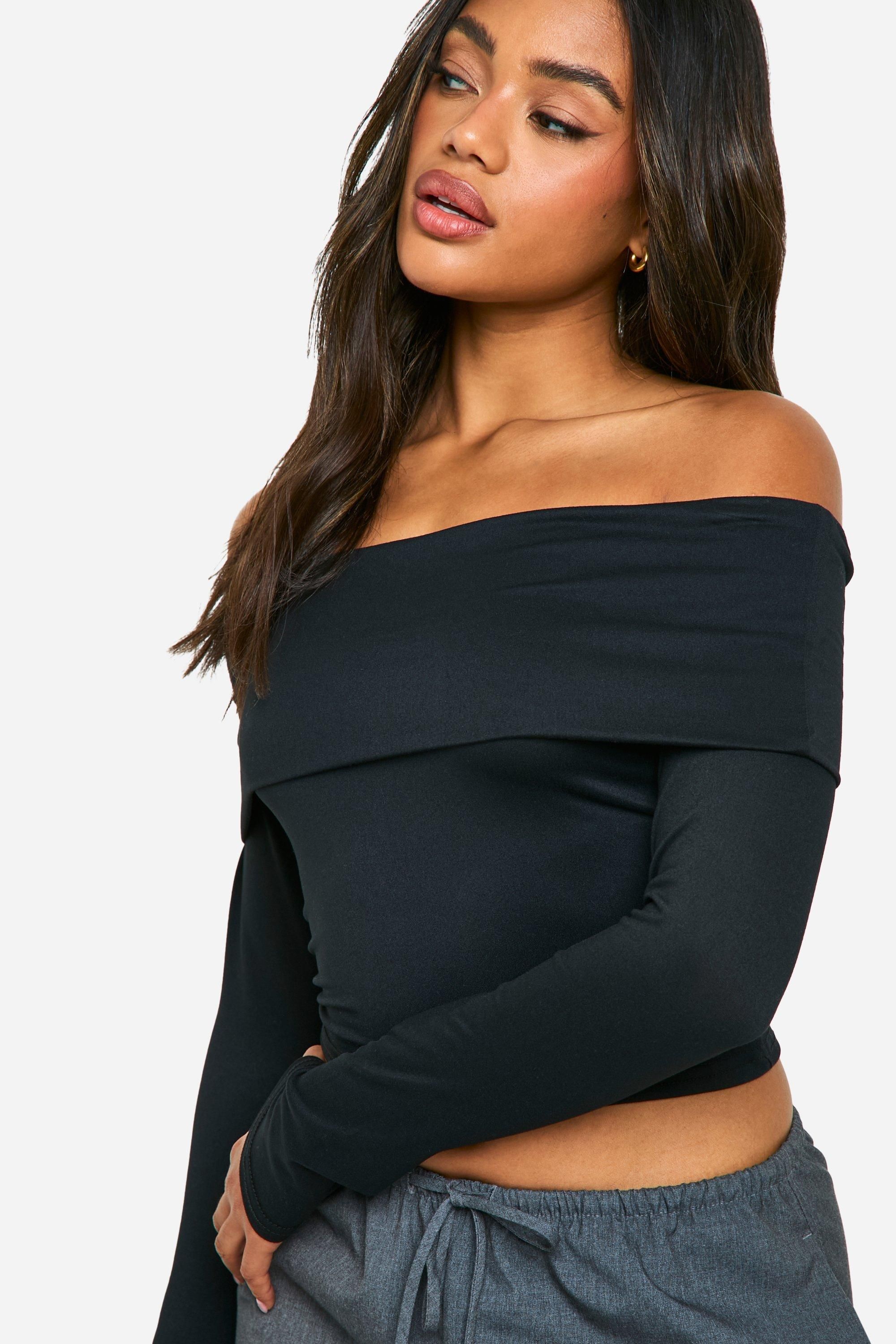 Топ Boohoo с длинными рукавами и складками, черный