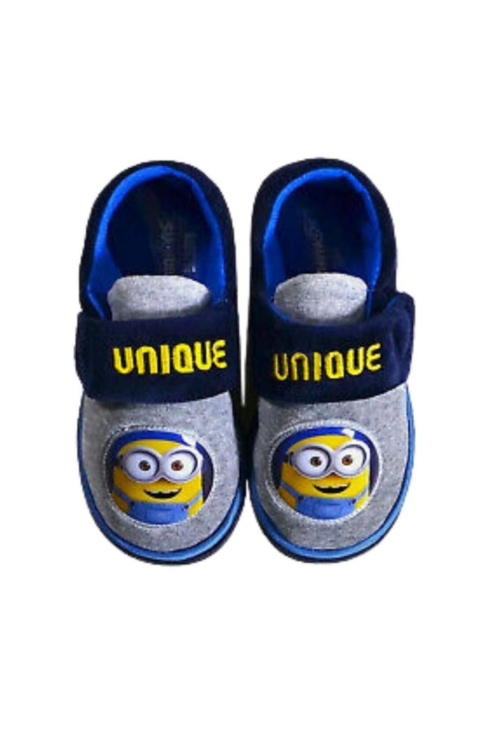 Белло! Ваш маленький миньон сойдет с ума от этих забавных тапочек «Гадкий Я»! Эти забавные тапочки фирменного синего и желтого цвета с изображением миньонов украшены ярким принтом в виде миньонов спереди и вышивкой «Unique». Эти мягкие тапочки с застежкой на крючок и резиновой подошвой идеально подходят для осуществления озорных планов и развлечений! Код стиля: 75-718106.