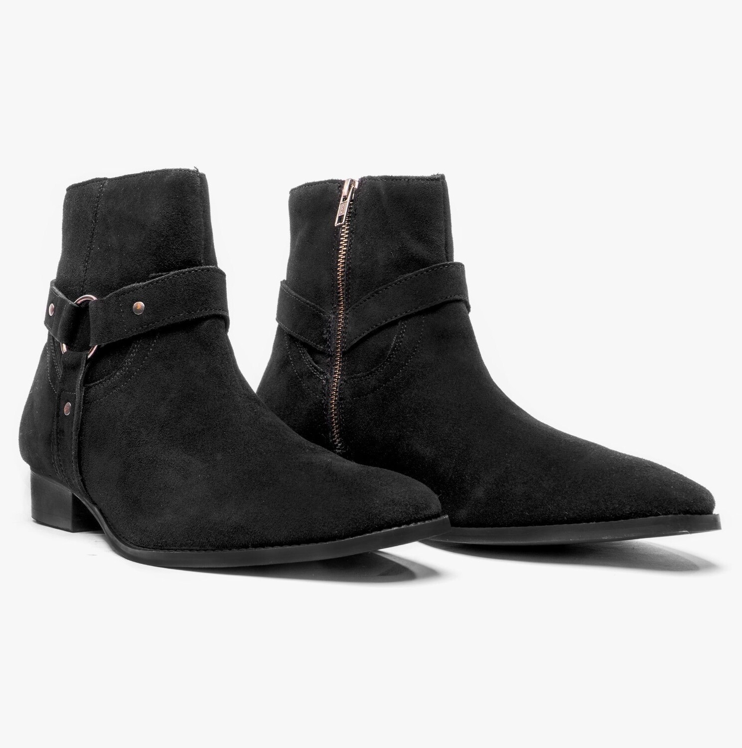 Материал верха: замша. Материал подкладки: синтетический. Материал подошвы: синтетический. Застежка/застежка: молния. Особенности: комфорт, фиксация. Тип каблука: кубинский. Форма носка: круглый. Ширина обуви: обычная. Вес изделия: 1,2 кг. Высота каблука: низкий (2,5–4,9 см). Высота голенища: Ботильоны. Стиль: Кубинские ботинки. Код продукта: RAUL-BLK.