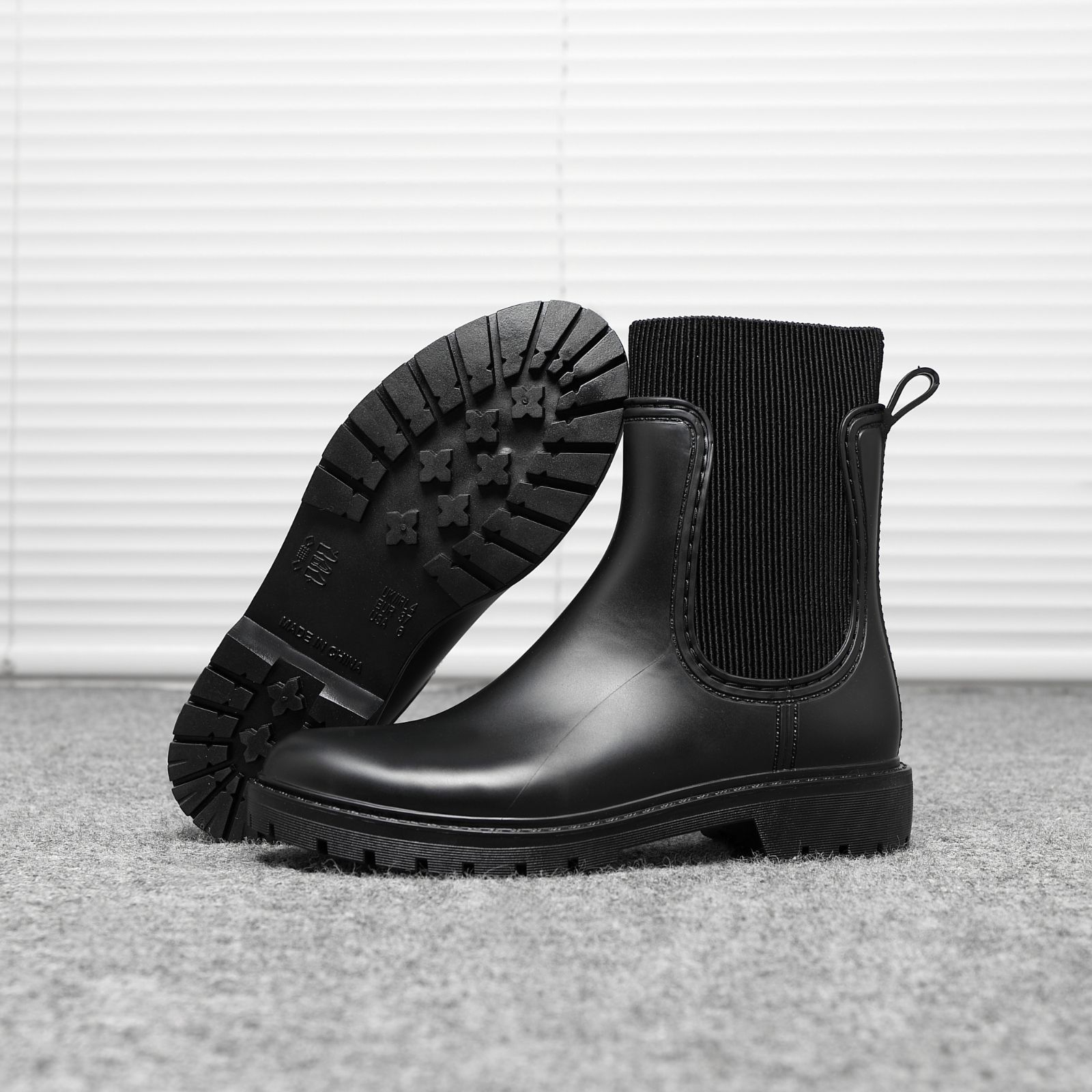 Оставайтесь сухими и стильными: эти ботинки, изготовленные из водонепроницаемого ПВХ премиум-класса, обеспечивают надежную защиту от дождя и сырости, сохраняя ваши ноги сухими и удобными, не жертвуя при этом стилем.