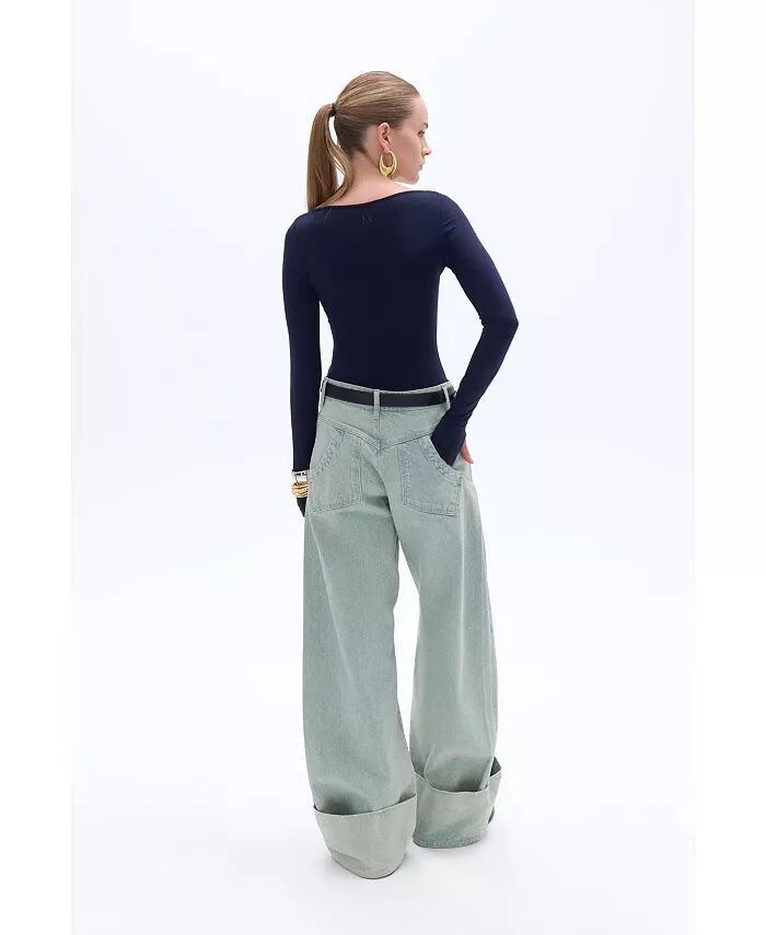 Боди с круглым вырезом, выполненное из супермягкой и суперэластичной ткани бренда, легко облегает фигуру и приподнимает ее во всех нужных местах.