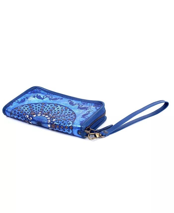 Наш клатч-кошелек mola из натуральной кожи украшен заклепками и гвоздиками в античном стиле, которые создают прекрасный старинный дизайн на изысканной металлизированной кожаной поверхности.