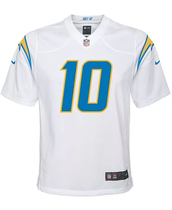 Когда Джастин Герберт на поле, команды соперников обращают на него внимание, поэтому помогите своему ребенку продемонстрировать свое восхищение одним из лучших игроков НФЛ с помощью этой эксклюзивной игровой майки Los Angeles Chargers от Nike. Эта майка с сетчатыми панелями для дополнительной воздухопроницаемости является копией подлинной, которую Джастин Герберт носит каждое воскресенье, предоставляя вашему юному фанату идеальную часть экипировки для каждой игры Los Angeles Chargers в этом сезоне.
