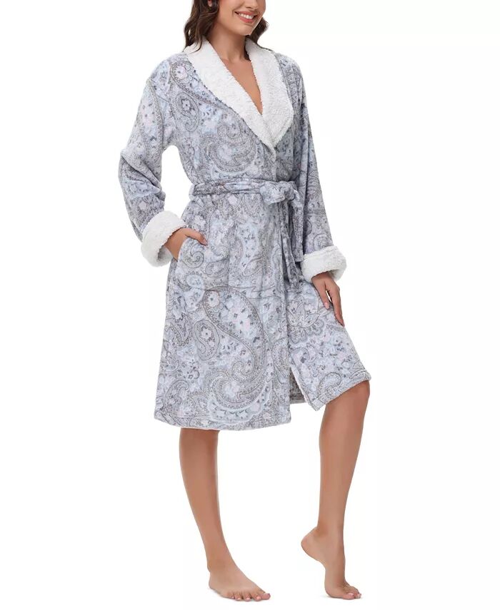 Очень теплый и уютный плюшевый халат с воротником и манжетами из шерпы для стиля и тепла.