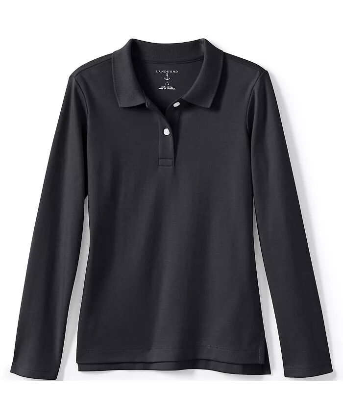 Женская рубашка-поло с длинным рукавом из интерлока для девочек Lands' End, черный