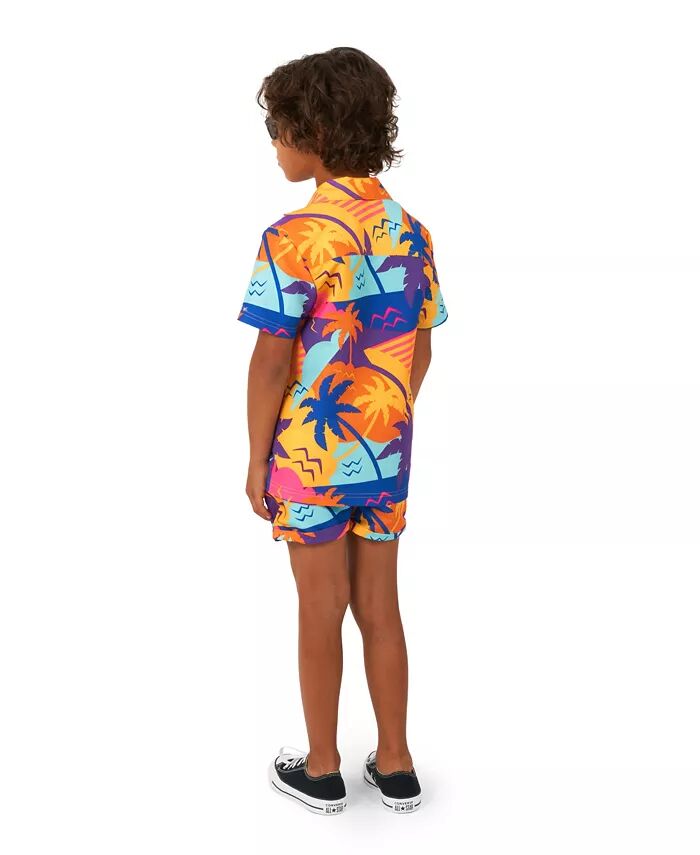 Летний комплект для мальчиков OppoSuits - комплект из 2 предметов гавайской пляжной одежды - оранжевый, фиолетовый, синий - комплект из шорт и рубашки - Palm Power