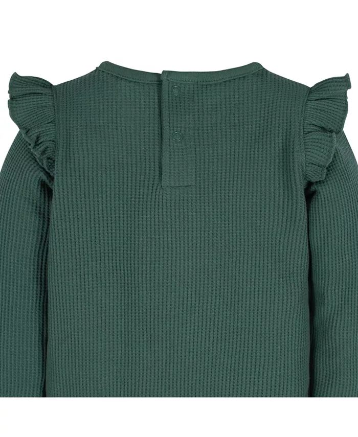 Боди Onesies Brand Bodysuit - это необходимая вещь в гардеробе. Этот боди можно носить как цельный или многослойный в холодные дни. Он изготовлен из супермягкой смеси тканей со стратегическими рубчиками на шее и ногах для дополнительного комфорта. Длинные рукава сохранят тепло и уют вашей малышки даже в прохладную погоду. Легко надевается и закрепляется кнопками на ногах, а оборки на плечах добавляют очаровательный штрих к этой быстрой посадке. Наши основные вещи прошли независимую сертификацию STANDARD 100 от OEKO-TEX, поэтому вам не придется беспокоиться о вредных веществах в гардеробе вашего ребенка.