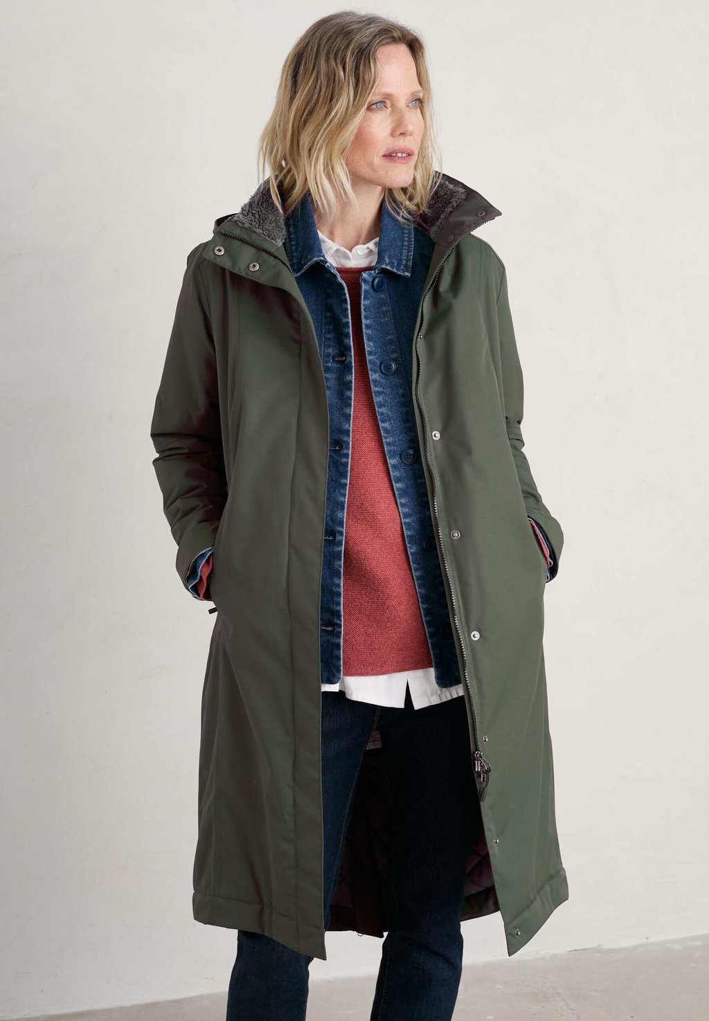 Детали: Застежка на подкладке, покрытая застежка, застежка-молния, двусторонняя молния