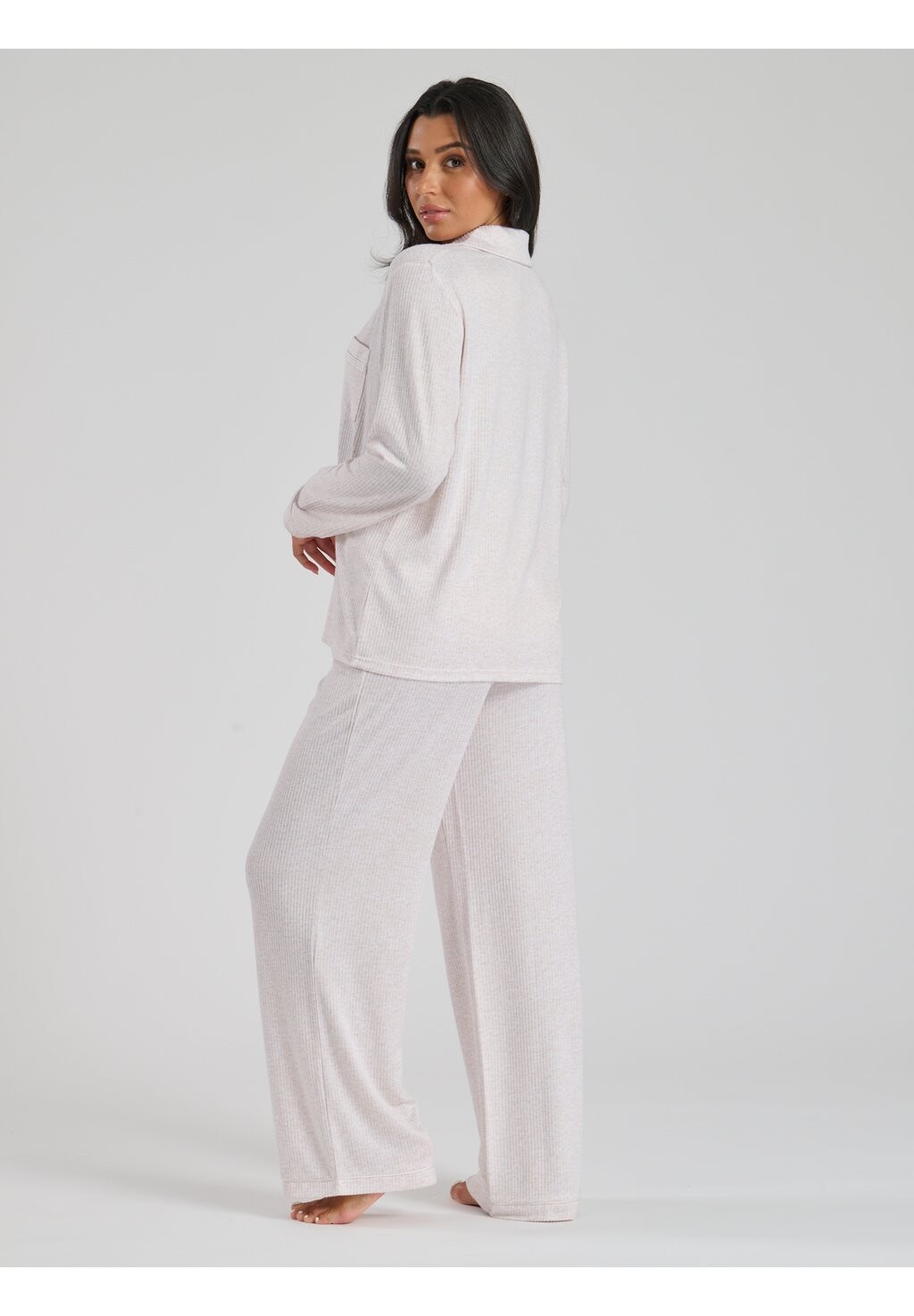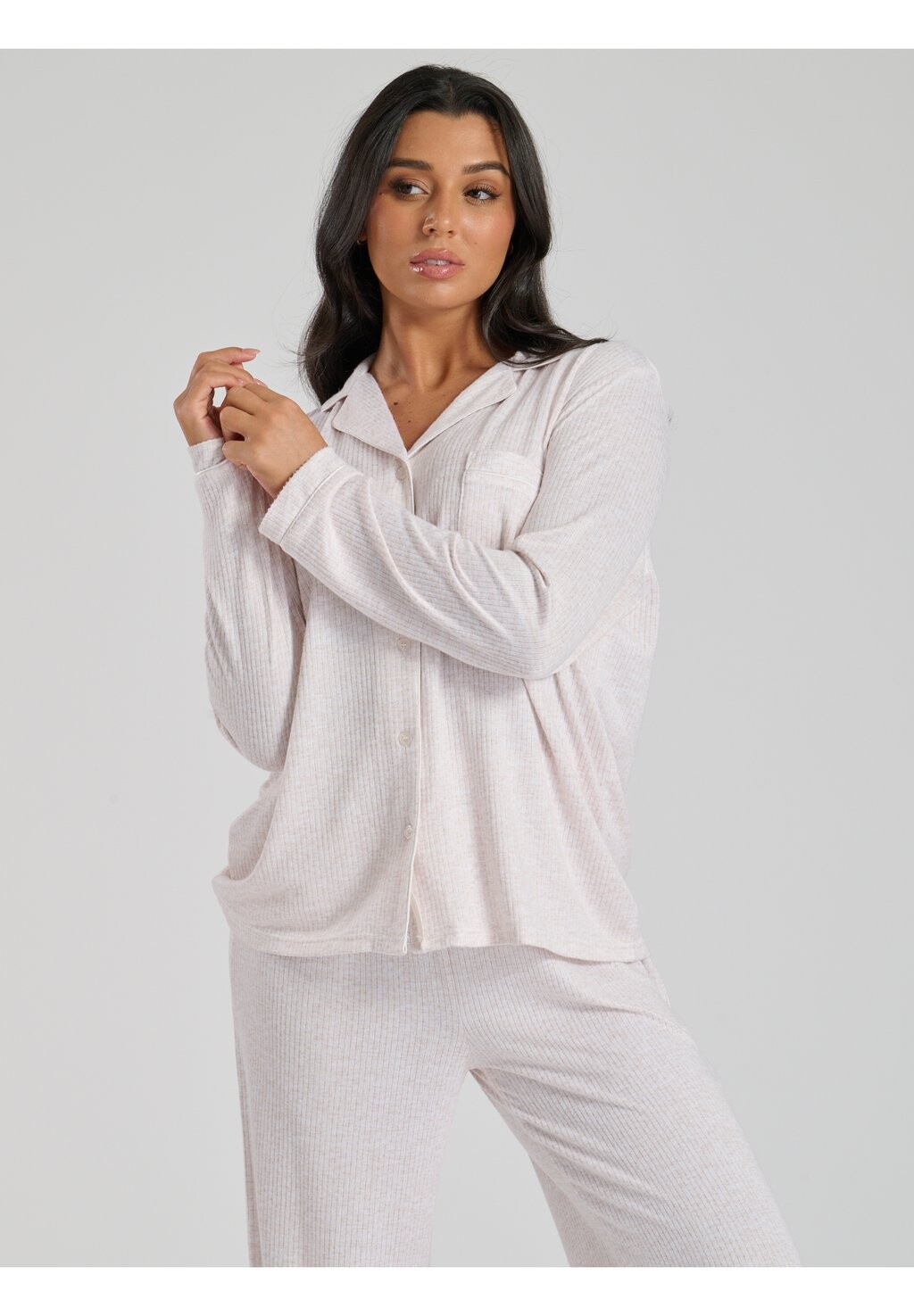 Пижамный комплект MARL BRUSHED RIB LONG SLEEVE BUTTONED PYJAMAS Loungeable, бежевый
